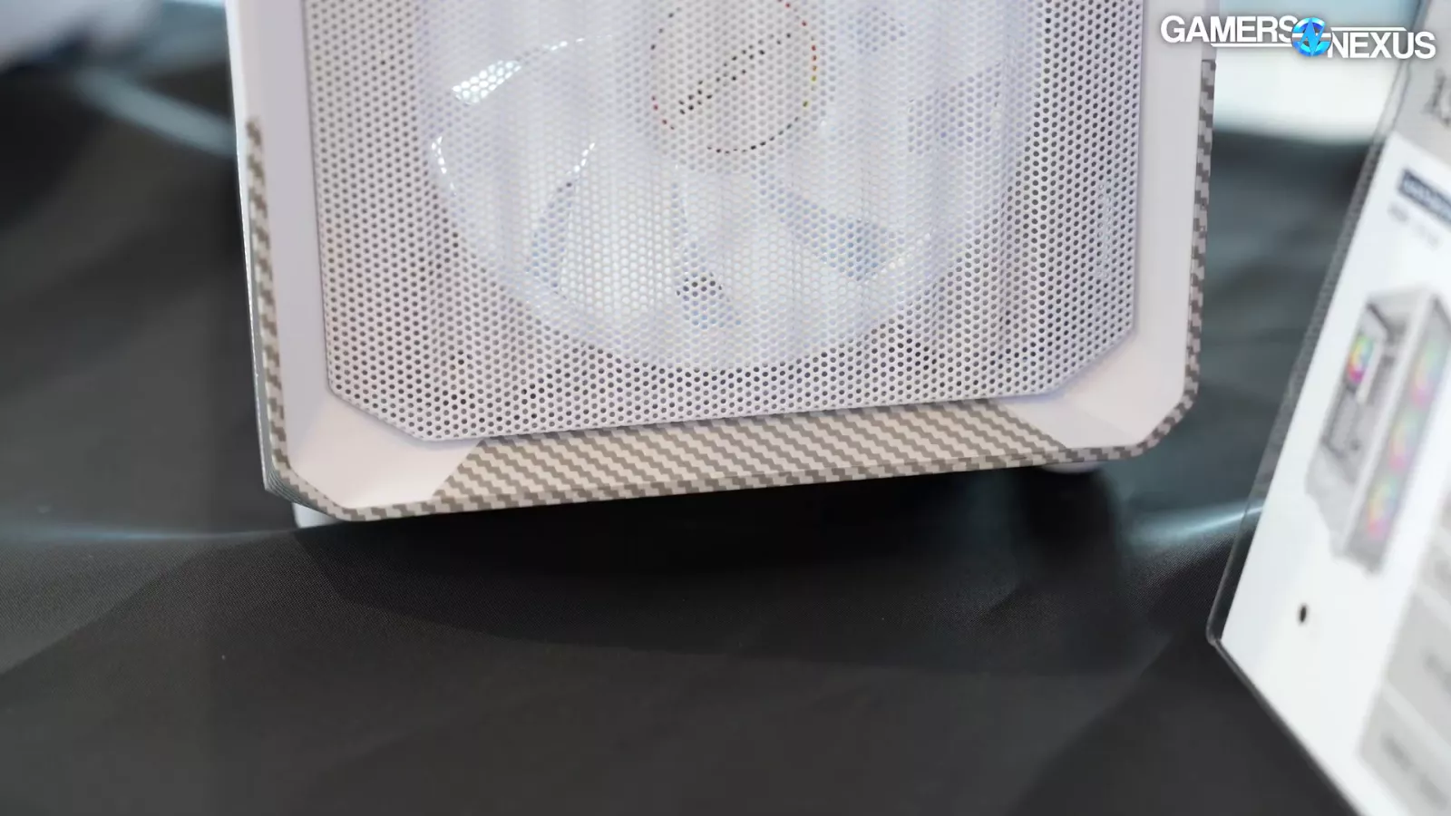It has a wavy mesh front panel. Montech is experimenting with either painting or placing a sticker on the case to make it look like carbon fiber. They kind of did that with a wood veneer in the past. It’s not real carbon fiber, but that shouldn't be expected out of a $75 case. They tended to do pretty well overall thermally despite using cheaper quality fans. Hopefully the company will be able to deliver on that front again because the below $80 case market is largely dead. The 4000D was supposed to be a case around $80 and that was kind of the last major one that was really successful. So, it’s nice seeing a $75 case, especially if it’s not made out of scrap metal.