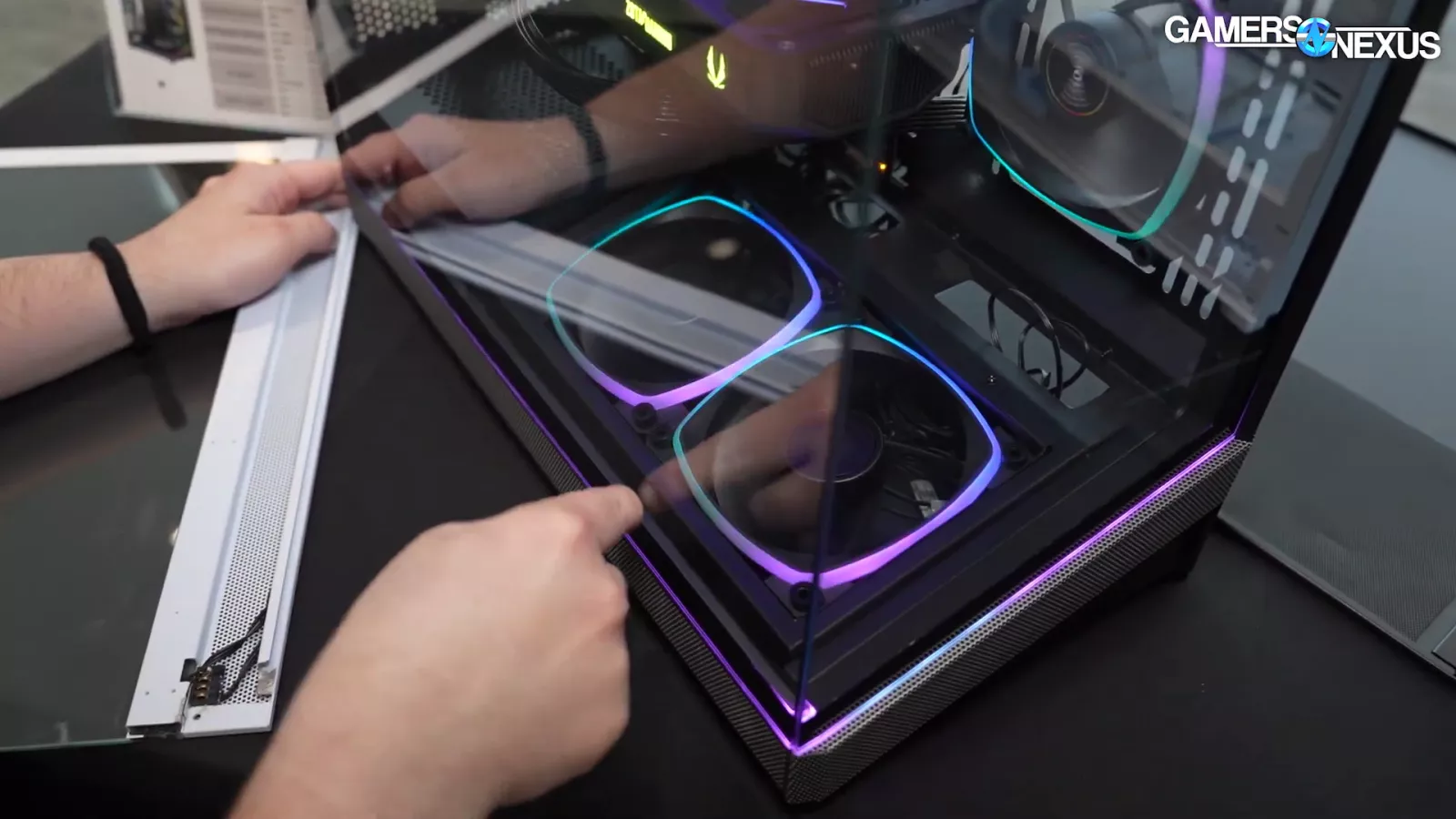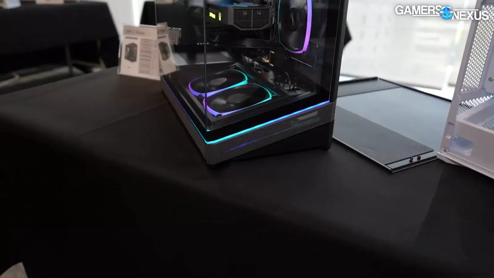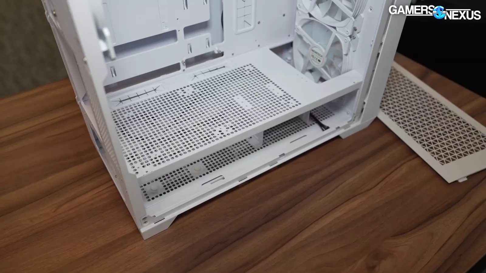 The thing that jumps out to us about this case is its canted tray for its 2 bottom fans, which are reverse blade ones that act as intake.