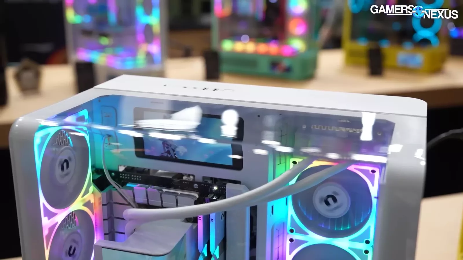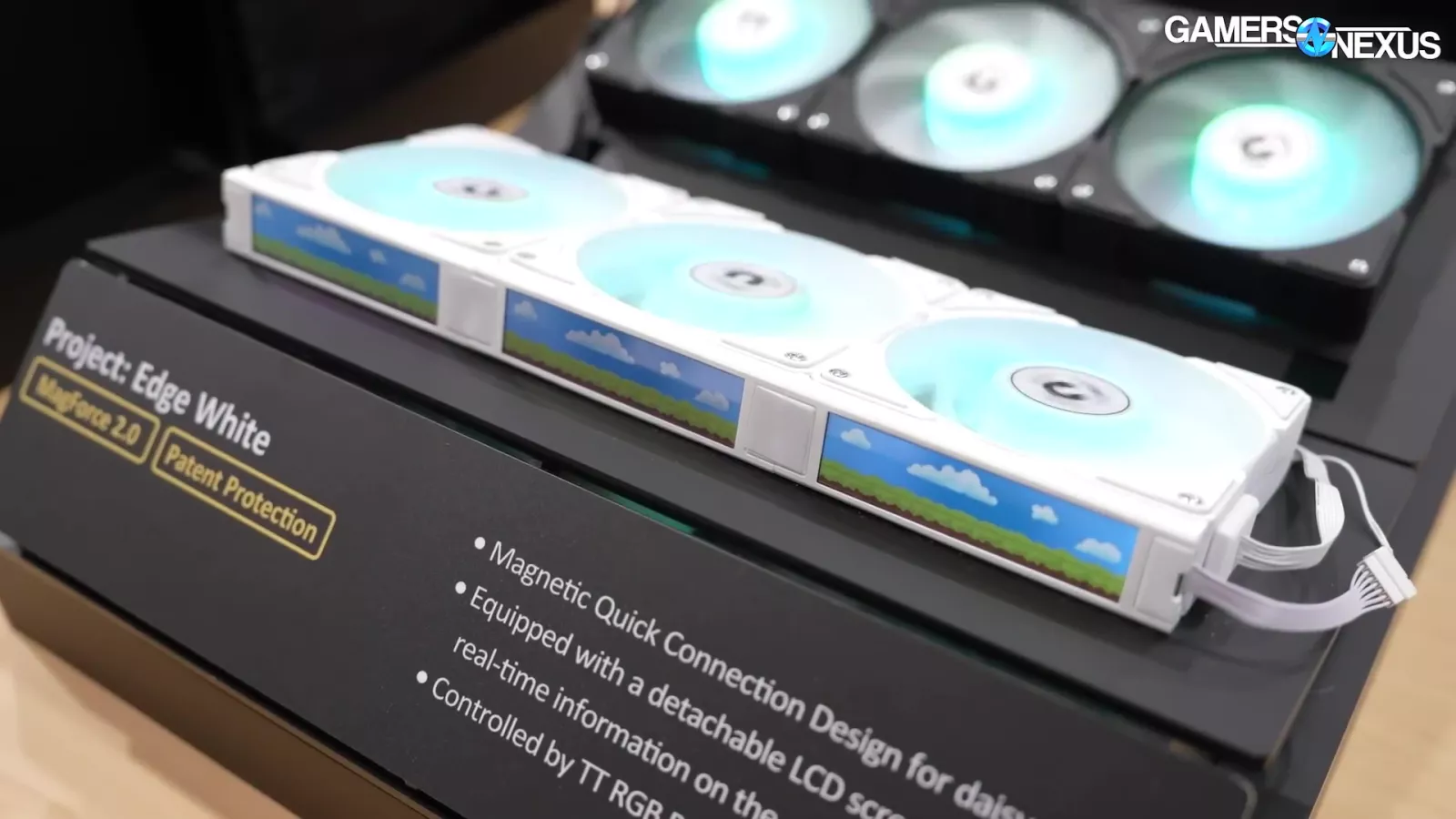 Thermaltake also showed off an early prototype of its Project Edge set of fans, which offers a series of progressing screens. The company thinks this is where the future of fans might be. To add some context here, Lian Li makes a bunch of money selling fans with LCDs on them. Now the direction might be LCDs on the side of fans.
