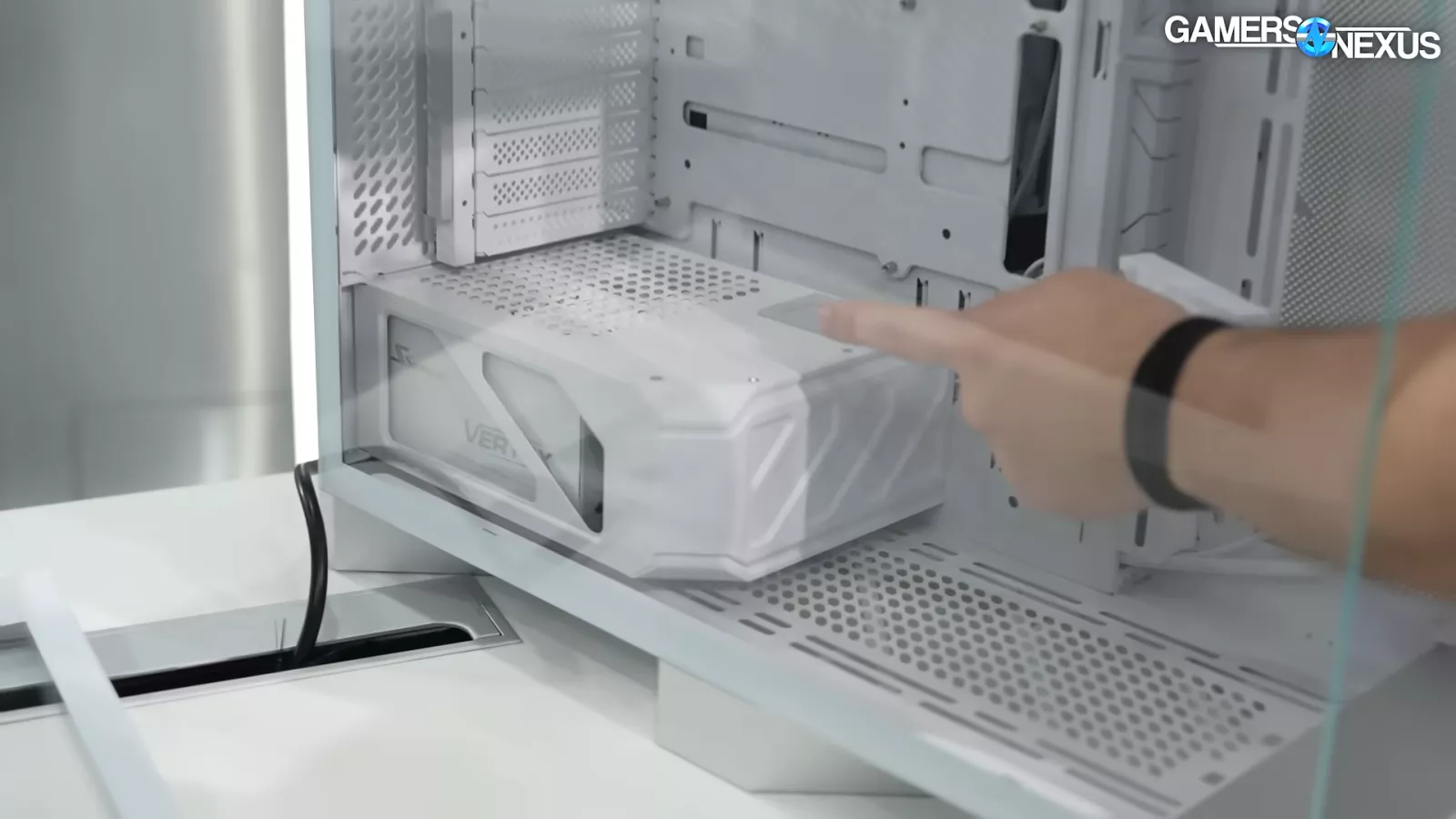 One interesting thing about the case is that it features a massive, thick aluminum structure on the bottom that acts as the feet. One criticism we have here is that it appears to obstruct airflow for the bottom fans, especially where the middle fan would be.