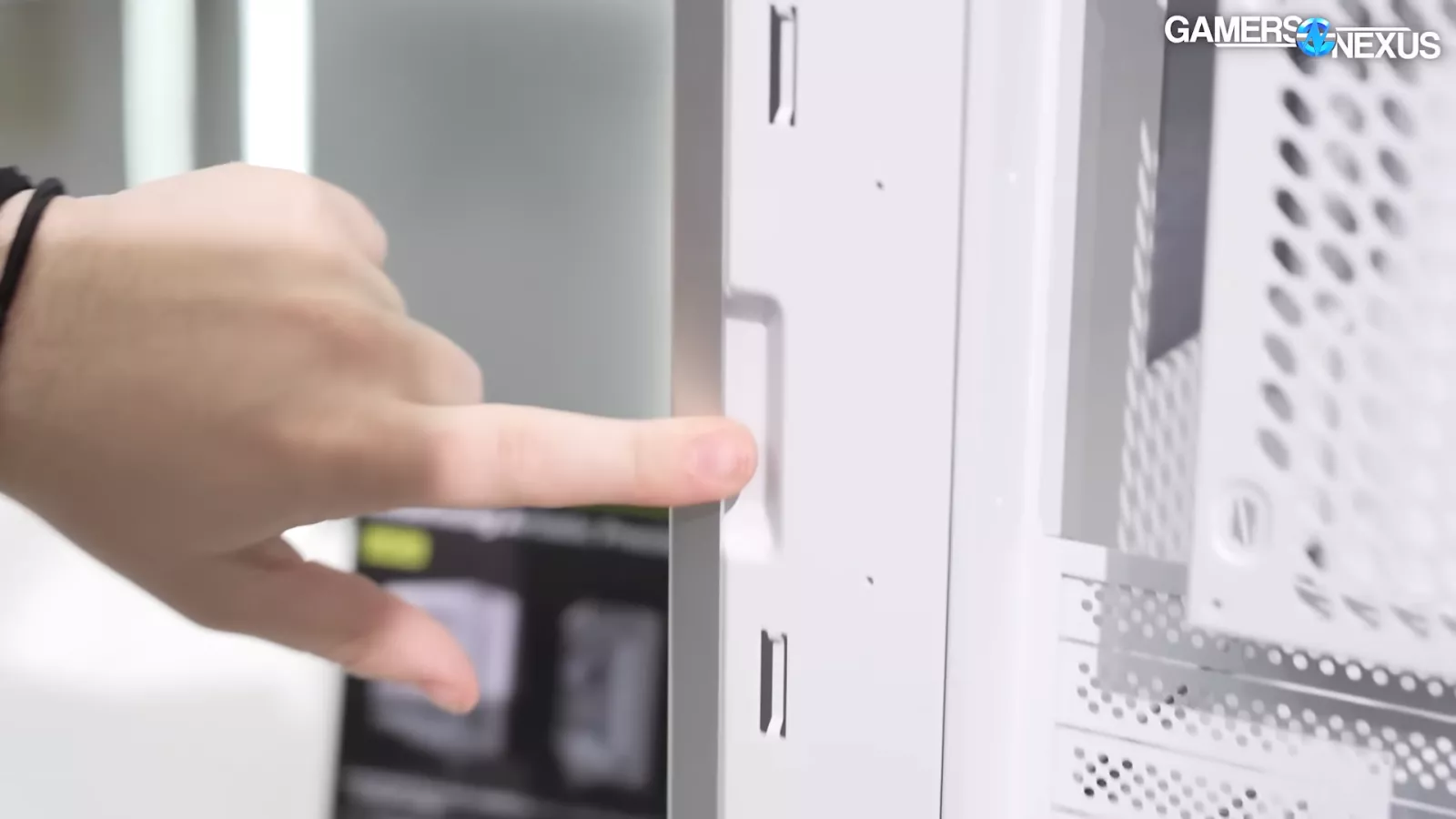 The Luca’s side panel has an indent that, once you push it in, allows the side panel to hinge and hang down, enabling you to remove it.