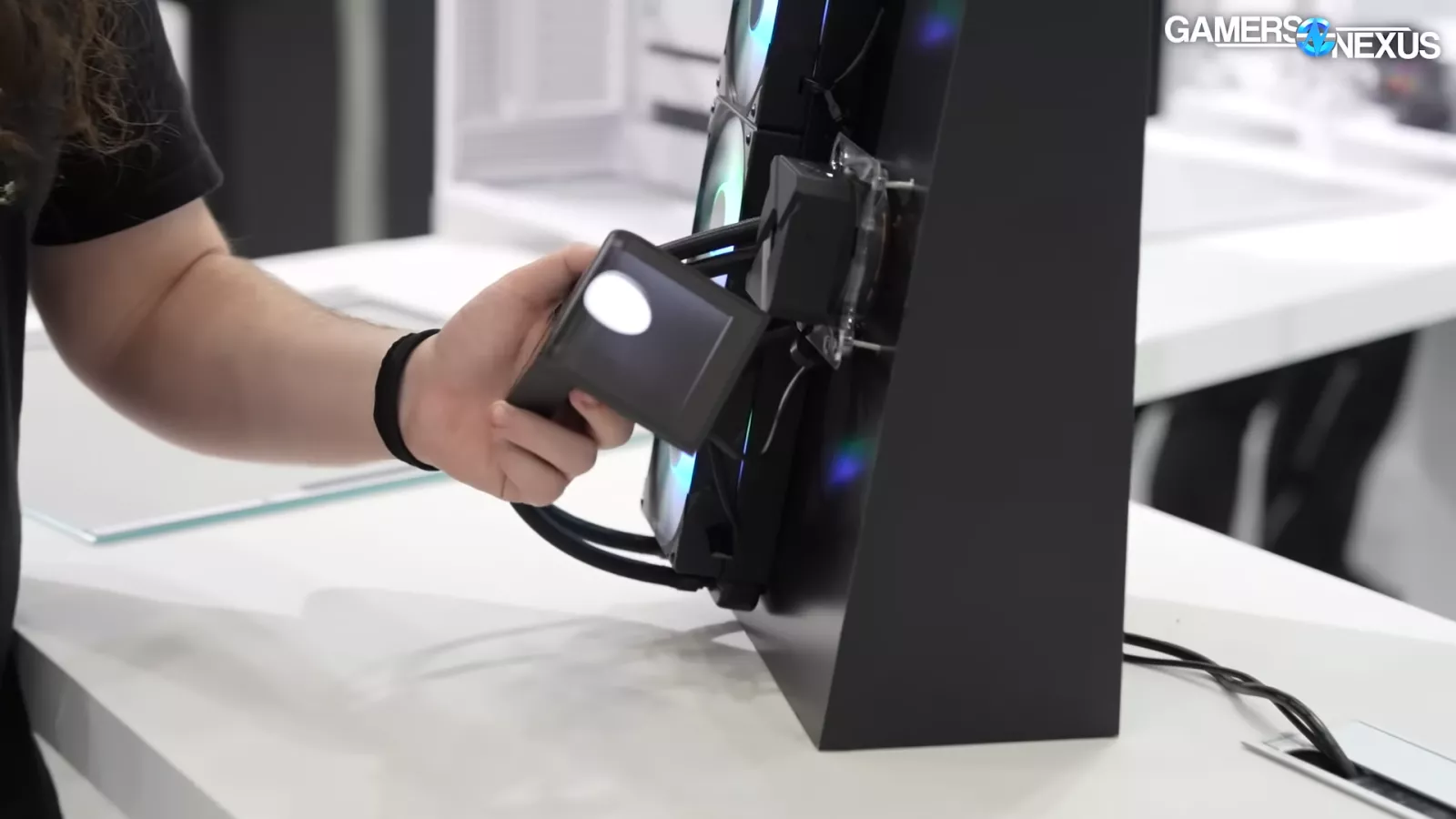 Now we’re moving on to the product that made us aware of the company. There are two versions of Tryx’s Panorama coolers. The more expensive pro version uses pogo pins that connect the screen to the chassis.