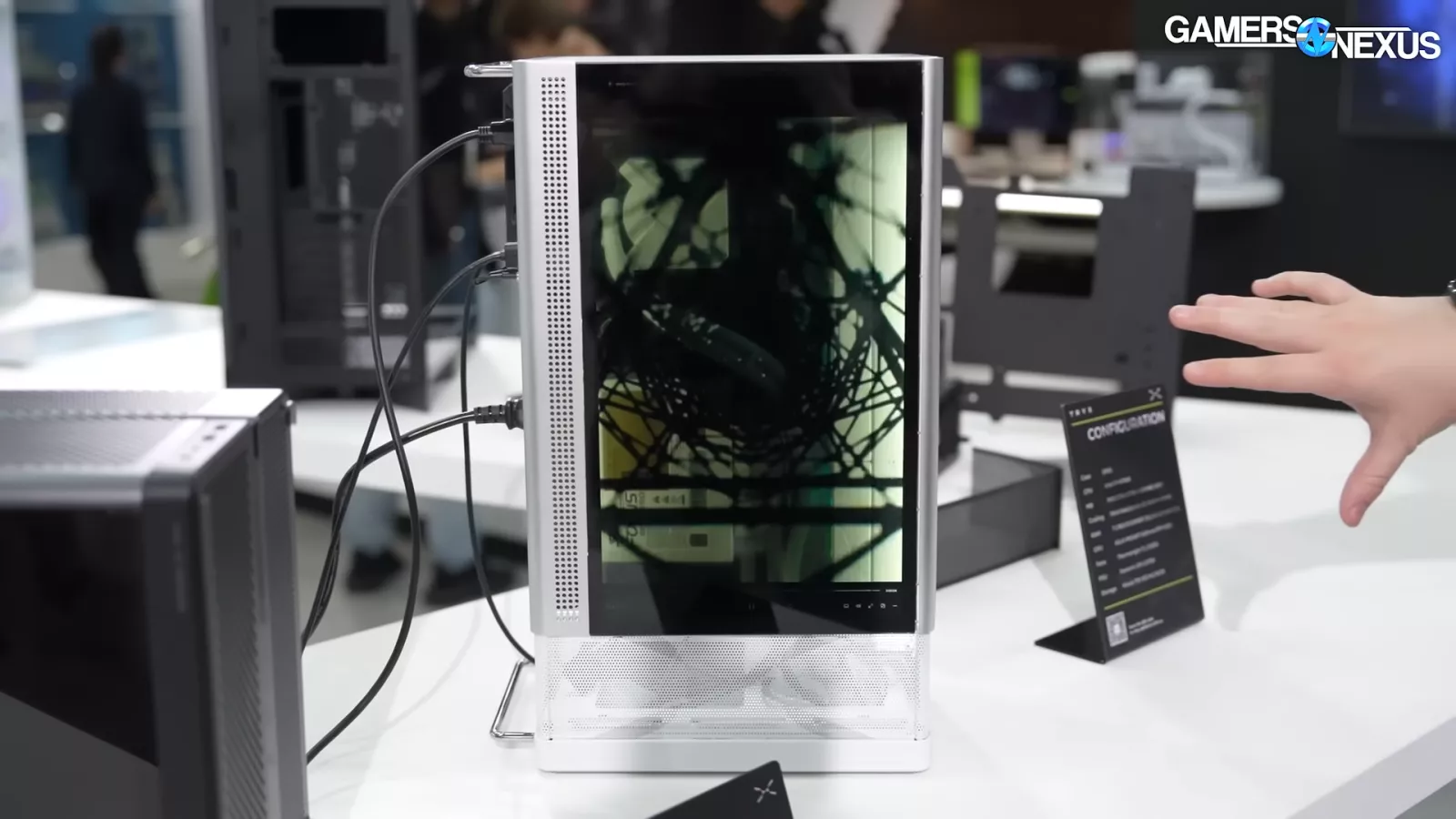 Next up, we have the Spes, which is a Mini-ITX case. It’s a small form factor chassis that is relatively large and seems to be reconfigurable to some extent. What we saw is only a prototype but what makes it interesting is that it is trying to get a 15.6-inch 1080p display on the side of the case, like the Snowblind case we saw years ago.