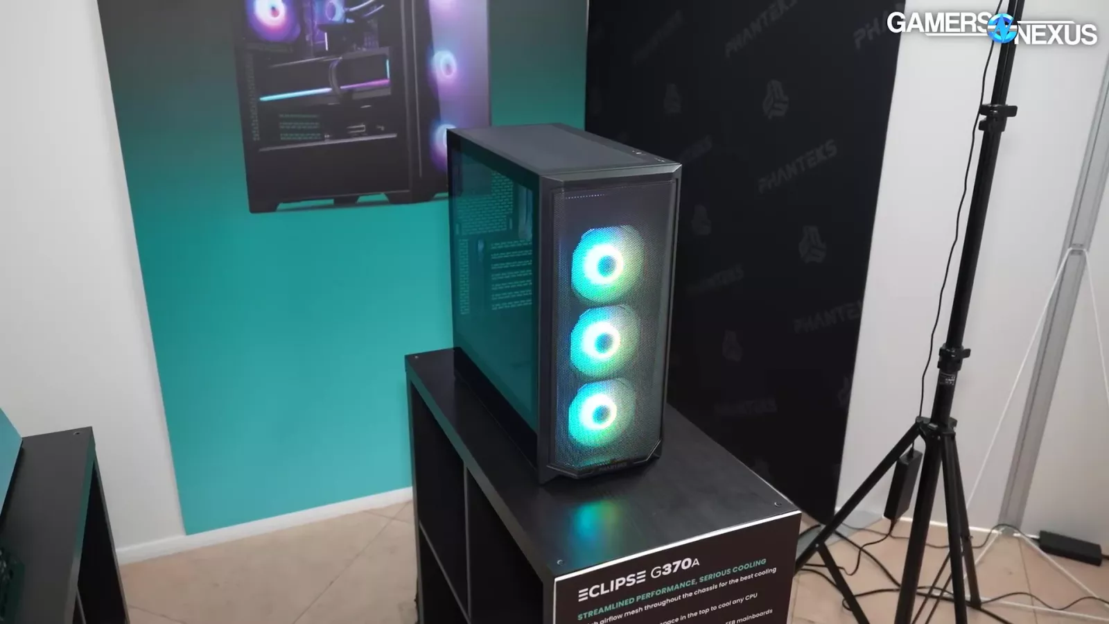 Phanteks also showed off its G370A case, which is a $60 case that includes 3x120mm fans in the front coupled with a mesh front that offers 38% hole porosity. The company tells us that manufacturing typically offers around 25% porosity.
