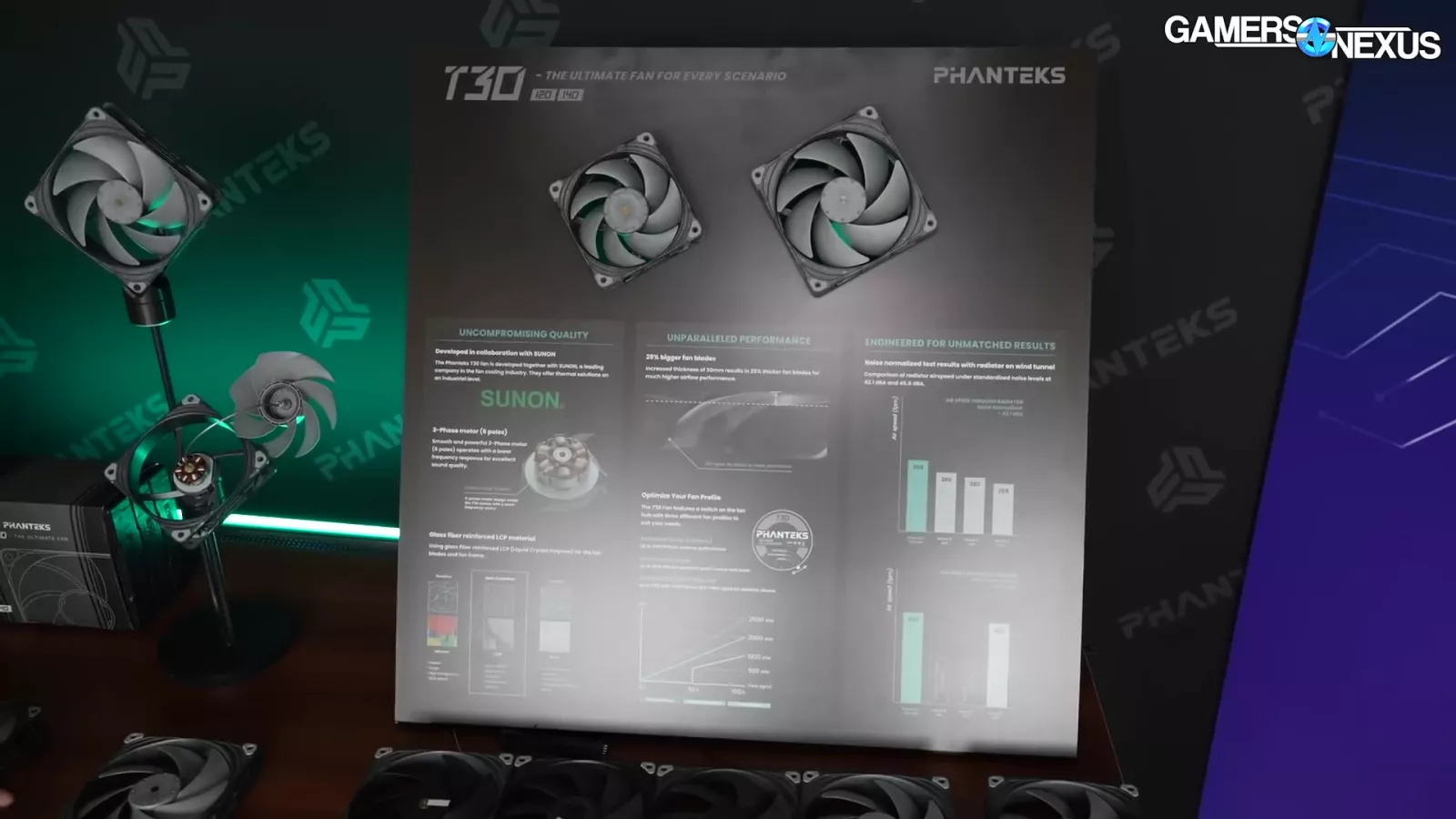 Phanteks’ T30 fan took the company 6 years to make and is a 140mm fan. The company is competing with Noctua in the high-end fan space, but is going for a grey theme instead of brown.