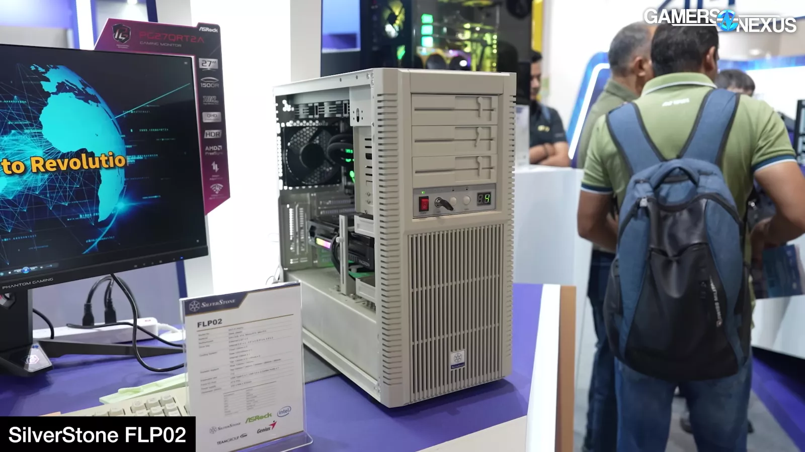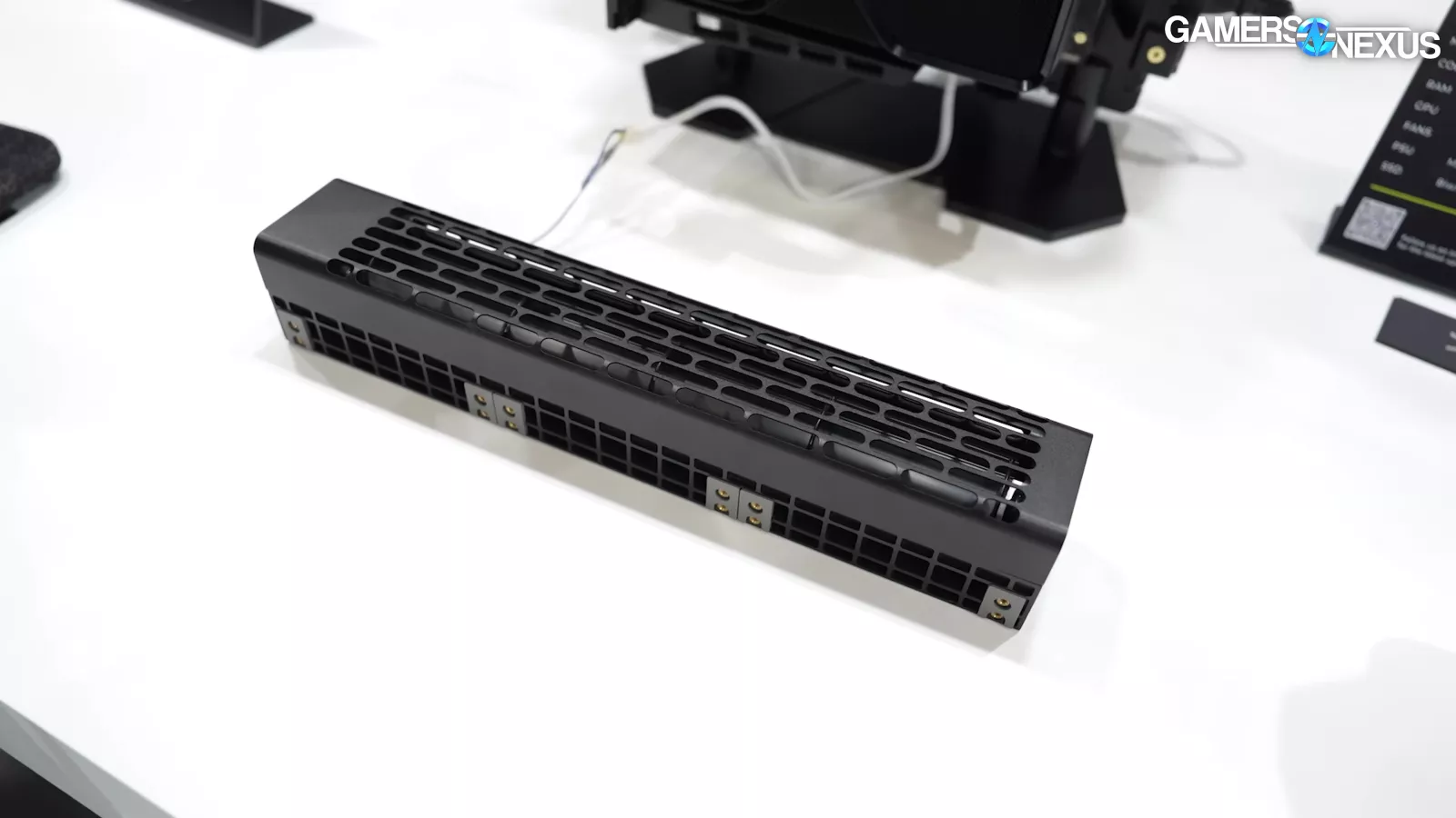 Cooler Master also debuted its new Cosmos cases, including a special edition variation with the NVIDIA DGX style front panel and another with ductwork for air cooling. We are currently critical of the special edition’s liquid cooling configuration and question how well it’ll work, though the size of the radiator should brute force performance (since it’s using 4x 180mm fans). It’s just that they’re blowing straight into a motherboard and wall.