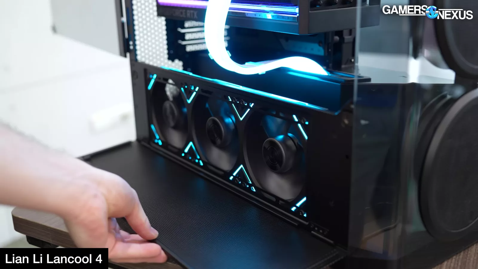 Lian Li had a relatively large breakthrough this year with its ongoing attempts to figure out how to embed fans in glass front panels. This has historically been challenging since it results in lower yields and broken glass, or in the worst case, just less surface area available for intake since a larger border has to remain for structural reasons.