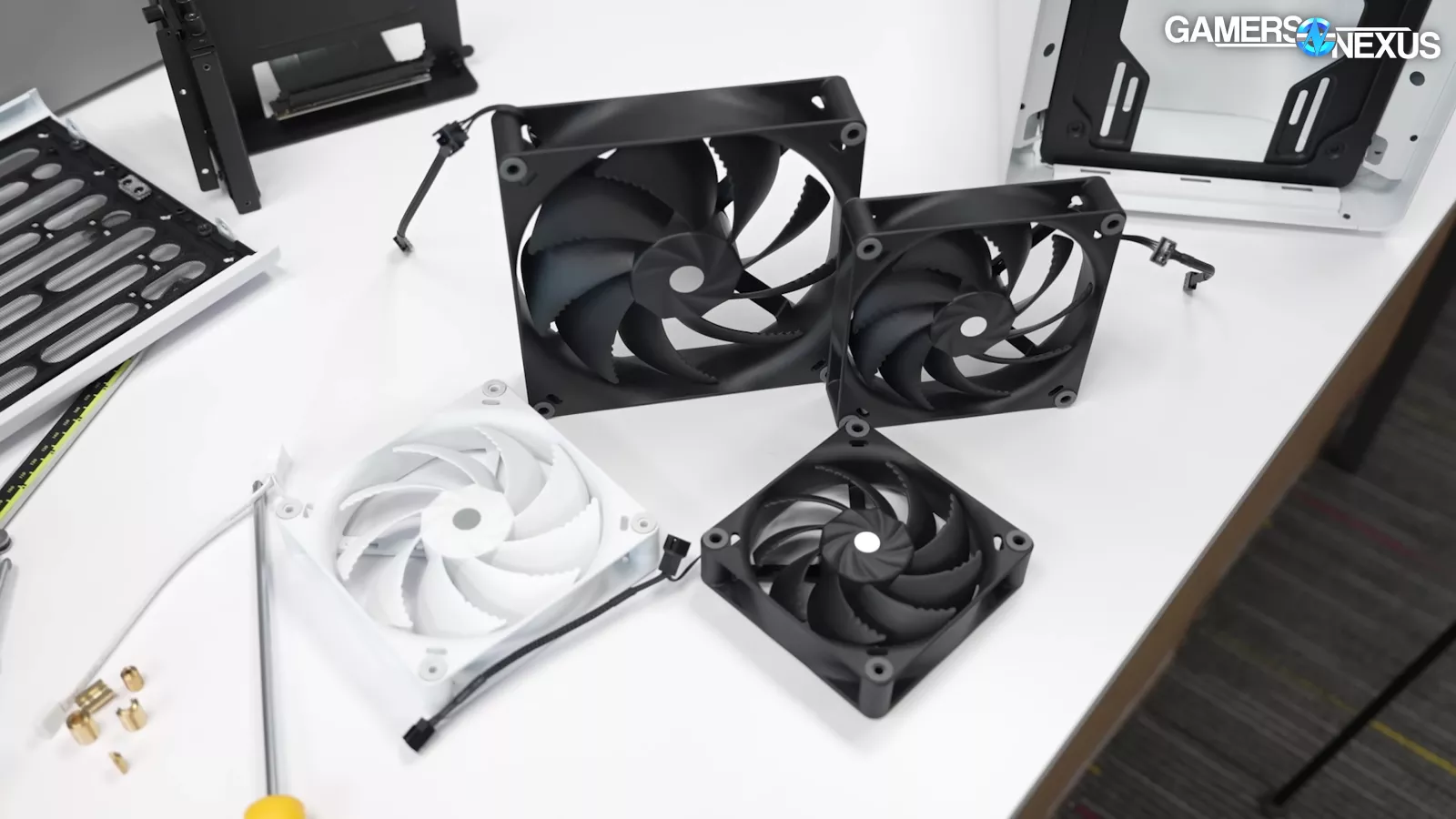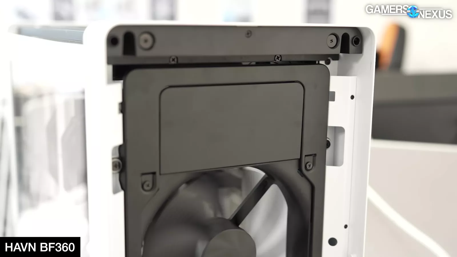HAVN’s new BF360 aims to be highly competitive for case thermals and has dedicated a significant amount of that toward fine-tuning the fans. We’ll see how it does in testing later in the year, of course. The case will use 2x 180mm fans at 40mm thickness in the front, helping with higher static pressure performance. In testing, HAVN experimented with positioning these front fans higher versus lower on the front panel, settling to mostly bias them slightly up in the case. This should help push more air straight into the GPU, which gets further tuning from a “ramp” shaped at the front of the PSU shroud. HAVN tested numerous shroud ramp types and shapes, finding ultimately that a wide, relatively modestly angled ramp provided the best performance with the fewest acoustic trade-offs.