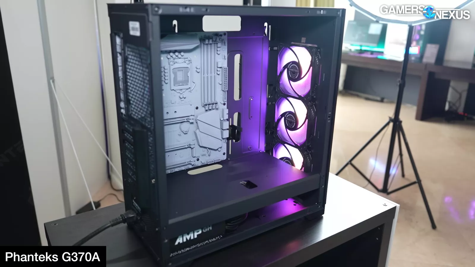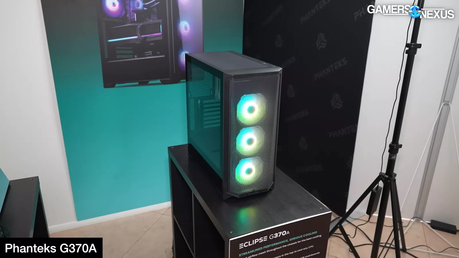 Phanteks was also present at the show. Phanteks had the budget-focused G370A ATX case and its XT M3 micro-ATX case. The G370A makes compromises to hit a price target of $60 while including 3x 120 RGB M25 fans. Phanteks described it as a smaller version of the G400 case. The case can fit SSI-EEB boards, though they’d block all the cable management routing aside from the highest pass-throughs, and is otherwise about as standard and plain as a case can be. The goal is price on this one.