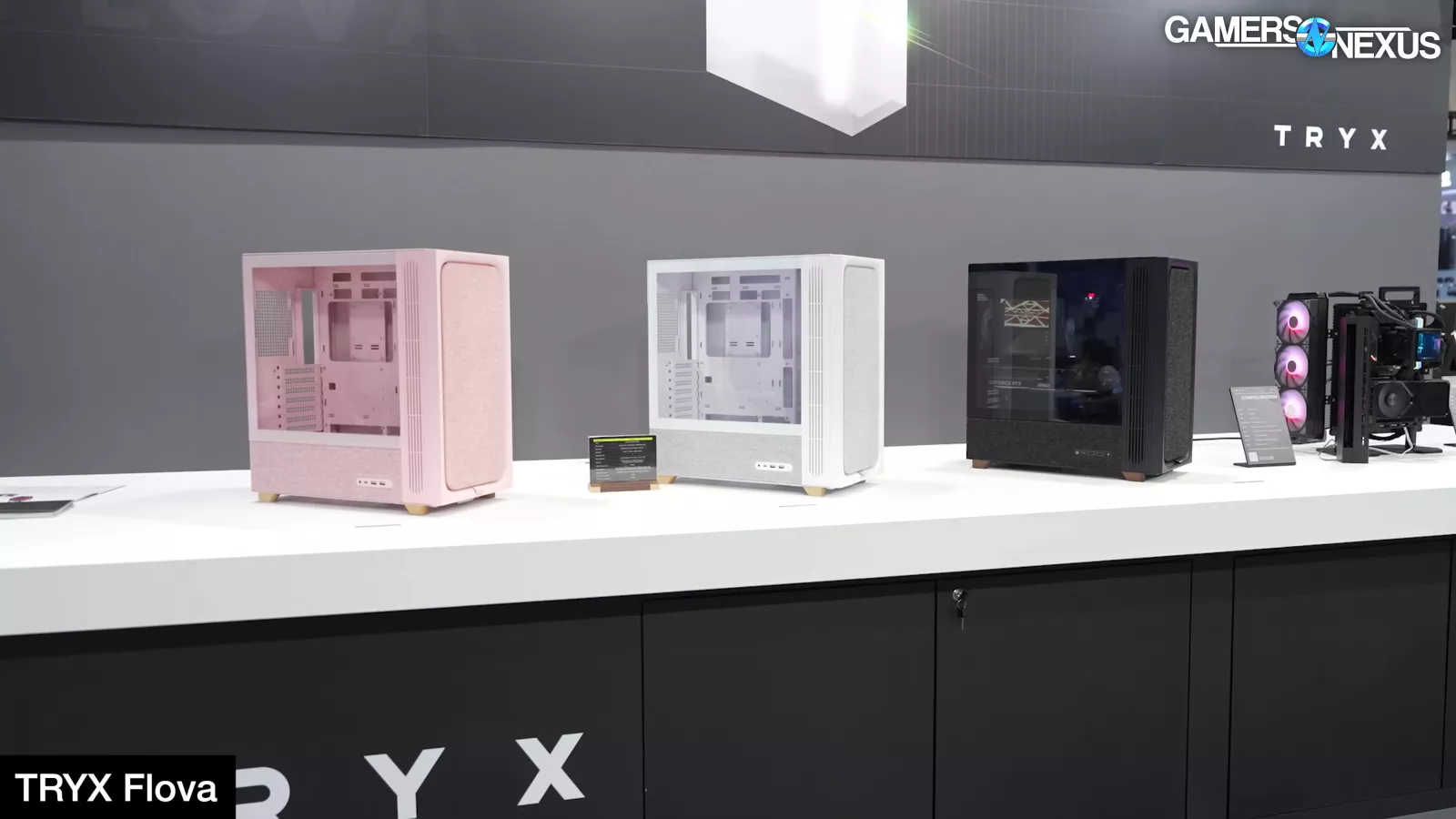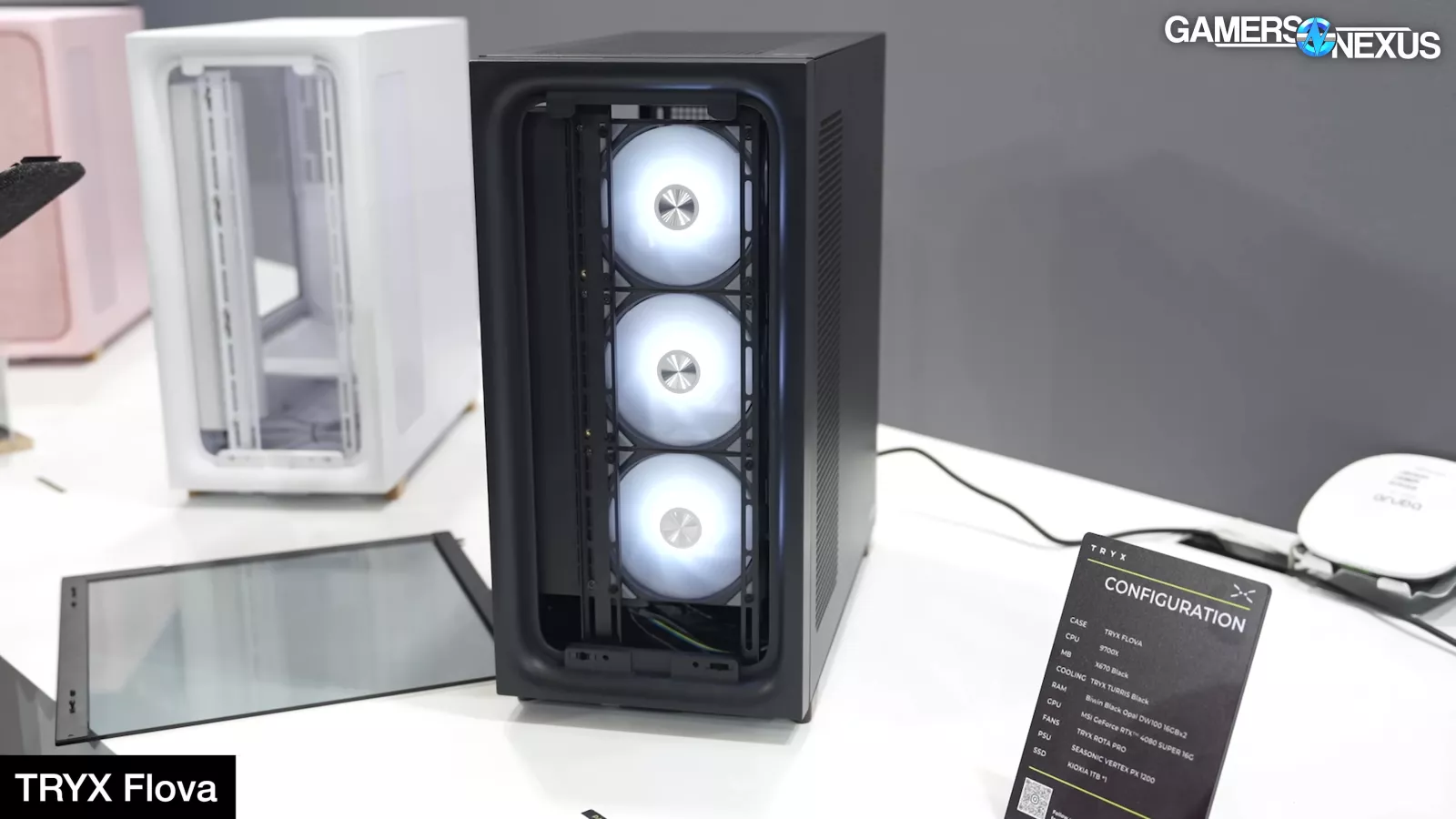Tryx was also present at Computex. The new Flova case is currently a concept, but Tryx is experimenting with trying to get a crossflow fan integrated with axial fans in the case. The idea would be to shove a crossflow (or transverse) fan in the space that could traditionally be used for larger front fans, which would then provide a more even, laminar flow along the top edge of the GPU and nearest the glass. Crossflow fans aren’t necessarily the best at this type of cooling, but could definitely be tuned to be competitive with enough research and care. We saw it work in the Meshless AIO mini-ITX case previously.