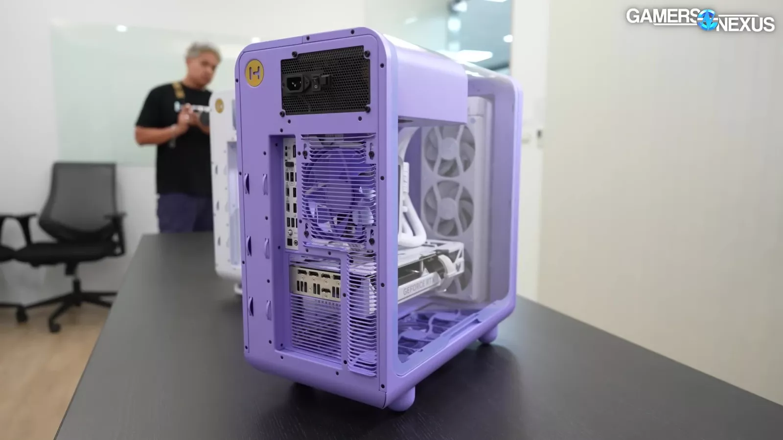 The louvered slats on the back were also a challenge to implement. Some of the factories that Hyte has worked with have told them it couldn’t be done or that they didn’t know how to do it. Teller said that the factory that produced Hyte’s Y60 (watch our review) and Y70 (read our review) cases, however, has an appreciation for doing difficult things and understands that if they’re able to do difficult things, they’ll be able to produce more units, which can generate more money. The factory was able to pull it off.