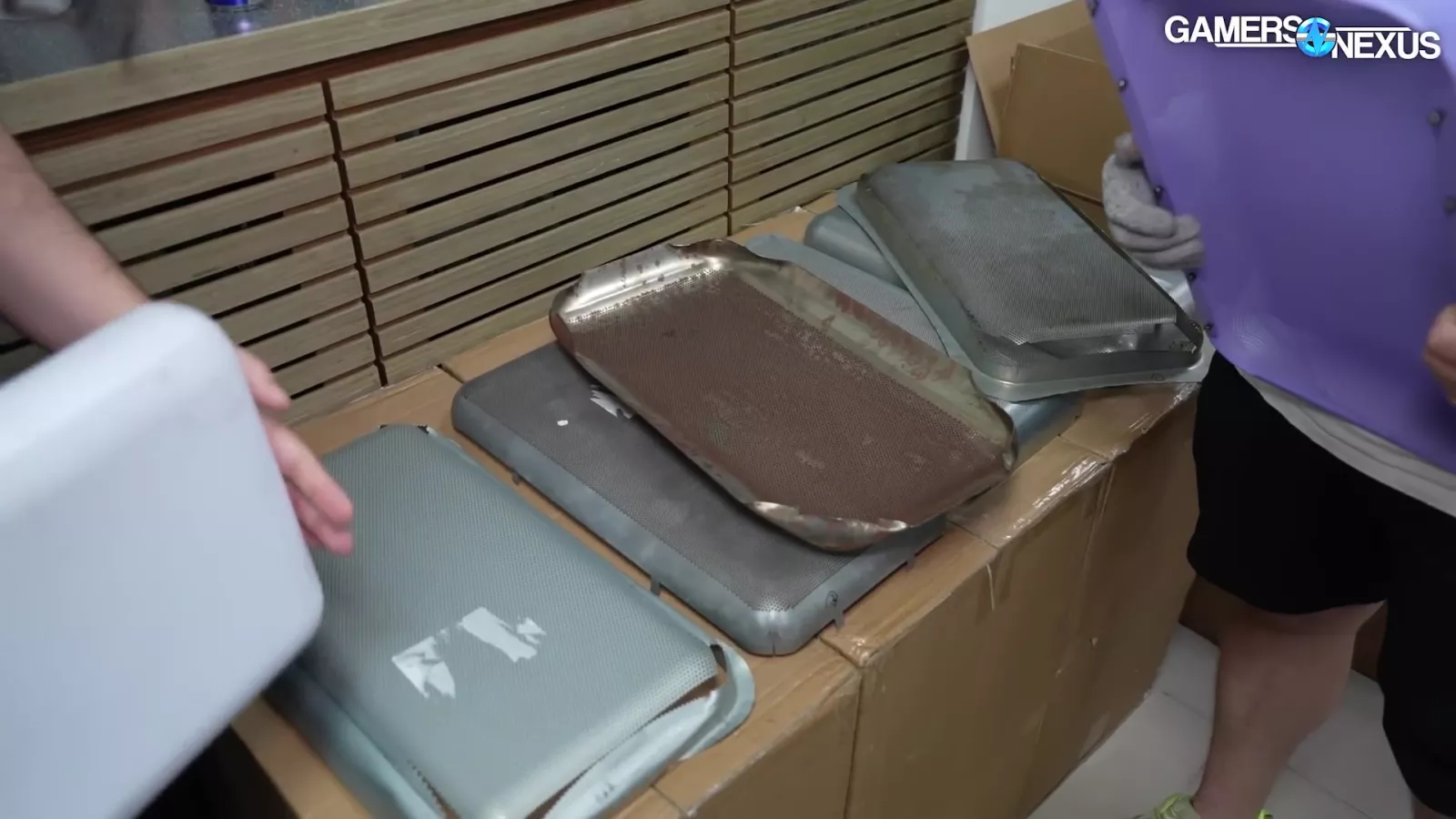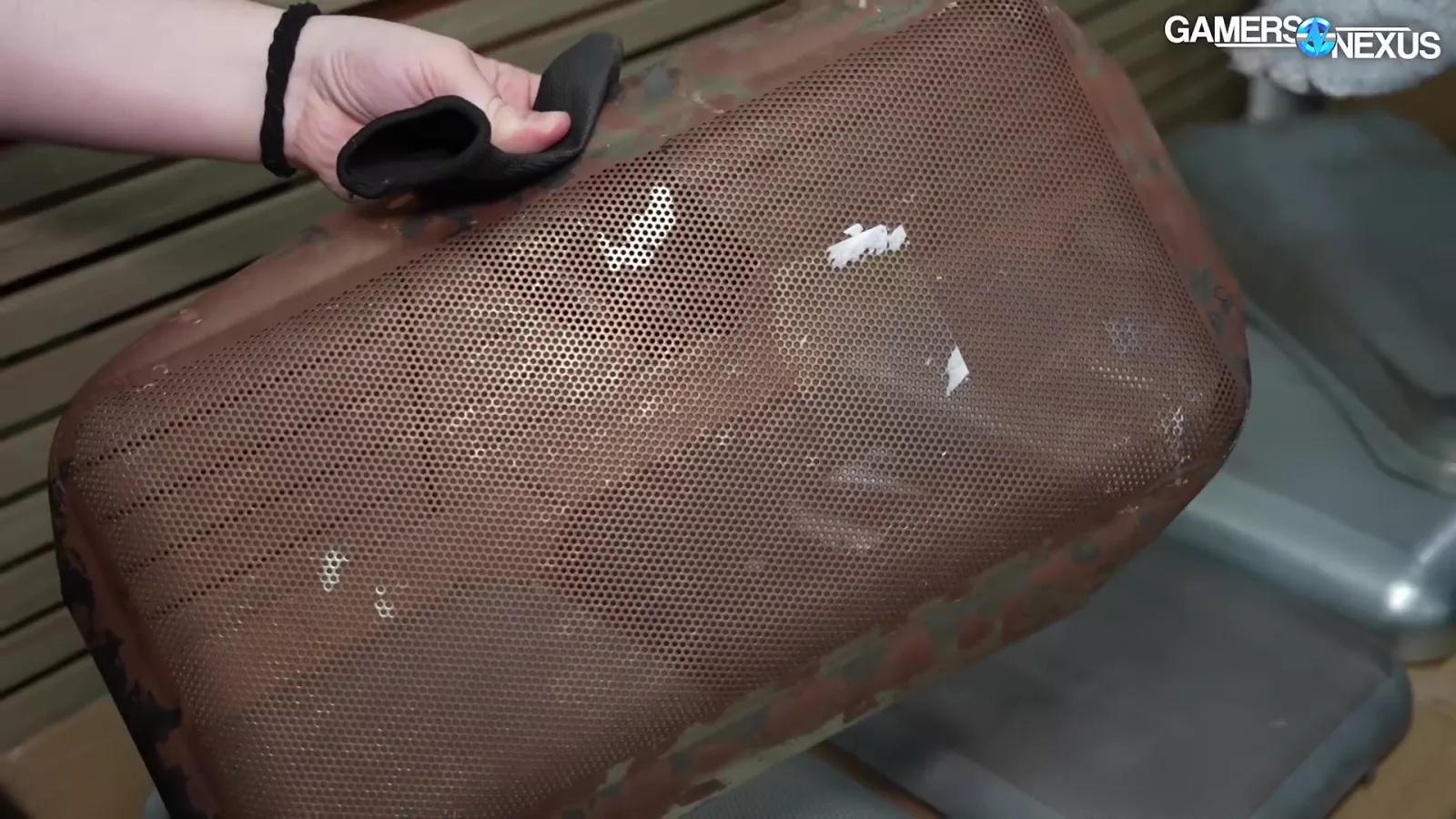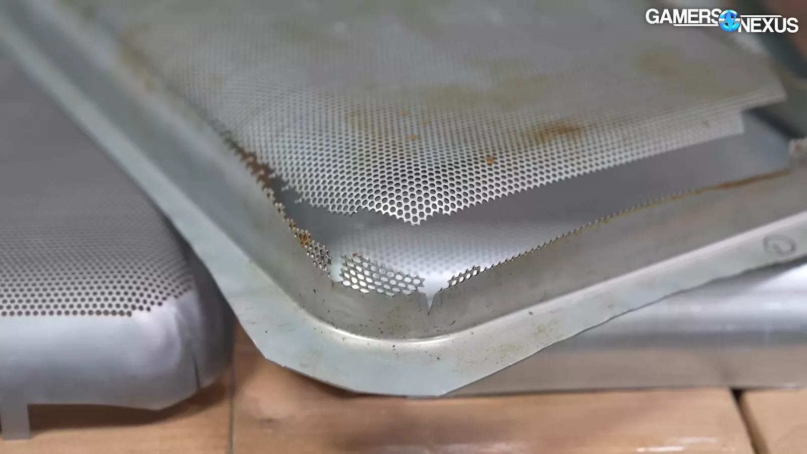 Another one we looked at was all rusted, which was due to the fact that Hyte used a softer metal with less nickel and chromium to reduce the chance of it tearing during the manufacturing process. Like we said up above, however, this introduces oxidation, which causes rust. The panel in the picture above is only a week old despite looking significantly older than that.