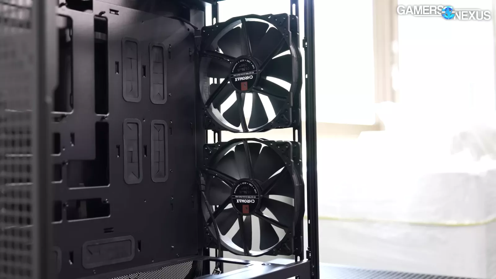 There’s going to be 2 versions of the case. 1 will come with dual 200 mm fans, potentially using Noctua ones. Pricing on the case is still TBD. We imagine one with Noctua fans will cost at least $300 or so and we don’t have pricing on the model that will come with 6 fans.