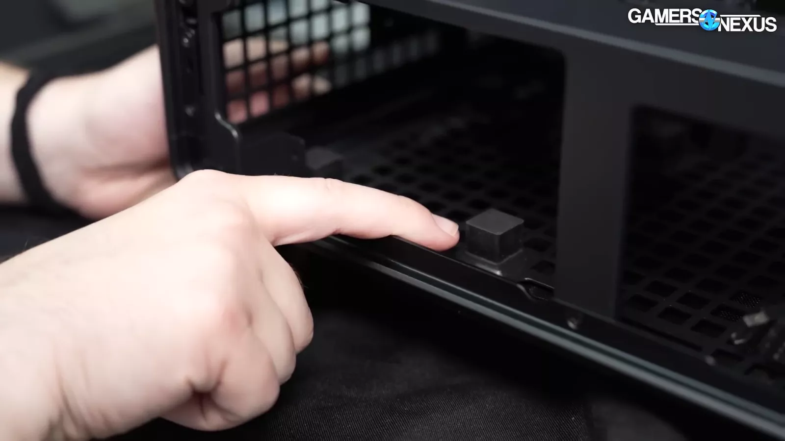 The last feature worth pointing out is that the front top panel with the front IO pops out. This provides access to the top, which is good for open-loop access and getting a radiator in and out.