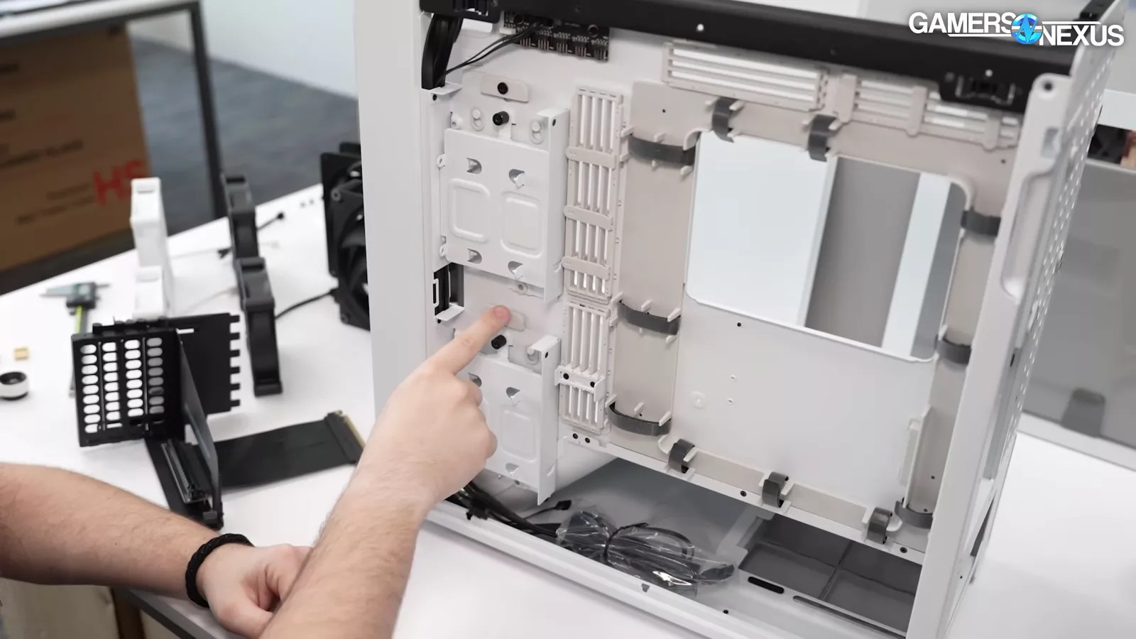 HAVN learned from the HS 420 on the 3 and ½-inch drive support and improved its implementation. There are 2 bays on the back side of the case for those drives and they can be removed. HAVN also changed how it handles the grommets with the case. The string-like material in between is the same but there’s now a little rubber tab that helps to prevent it from popping out by accident once it’s filled with cables. The point here is that HAVN is trying to learn from what they’ve done with the HS 420 and to refine their designs.