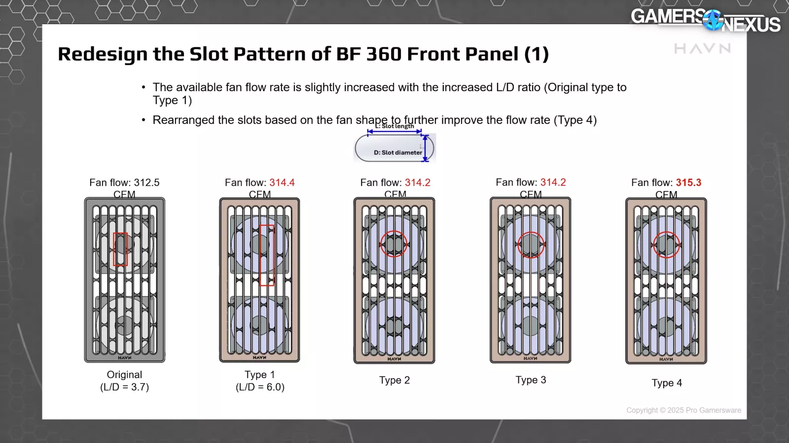 As shown in this set of images, the point is that HAVN is really mocking up a ton of different styles of panels, from the shrouds to the slot spacing, to try and determine the thermal performance and optimize for it. This is a major progression for them. It’s a lot of work to do all of this, which is cool to see. Of course, we have to test the product to see how it came together, but the CFM performance of type 4, as they called it, was the best, but we're ultimately looking at tiny differences here. Still, all of those small differences across the case will add up in theory.