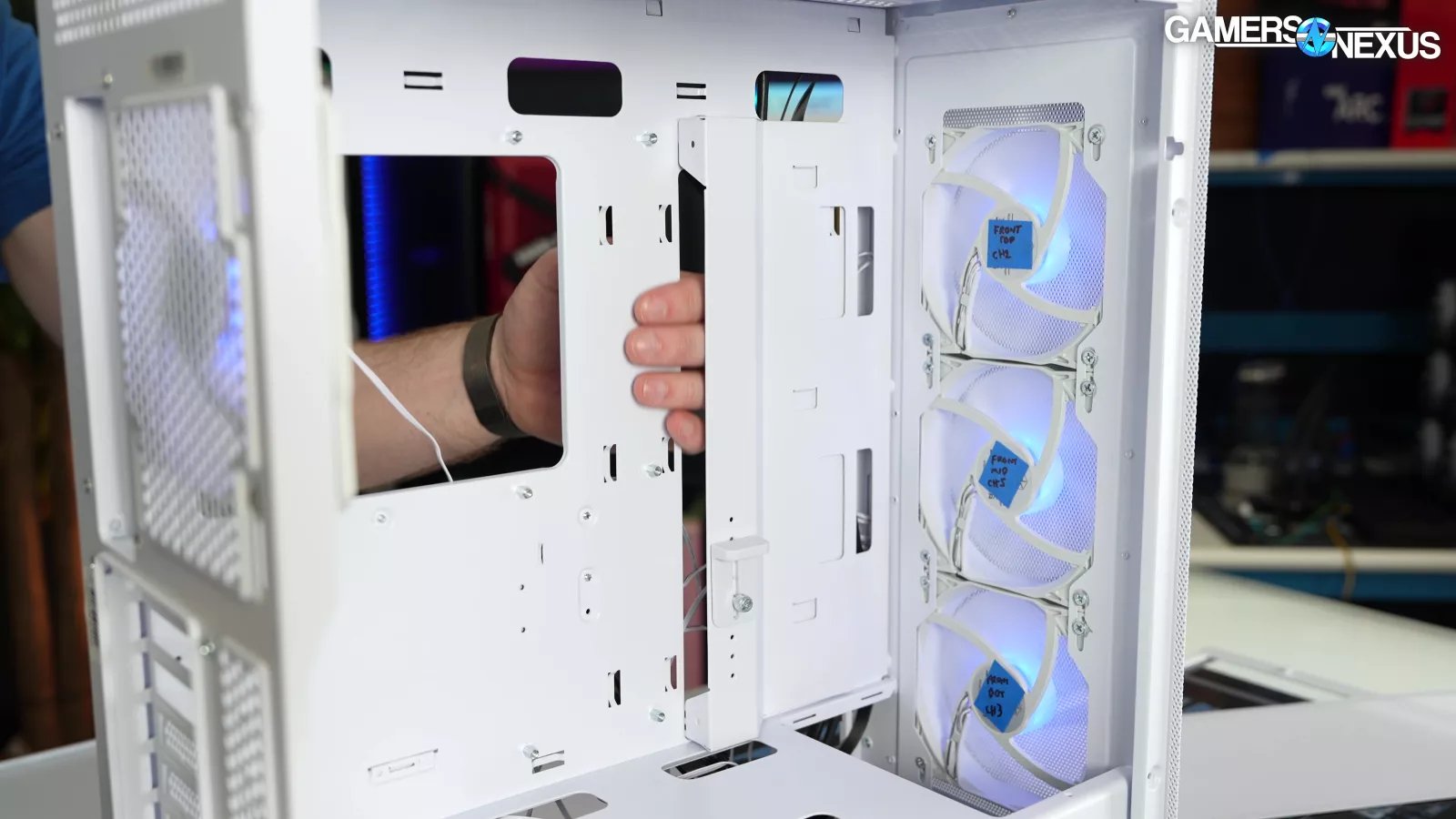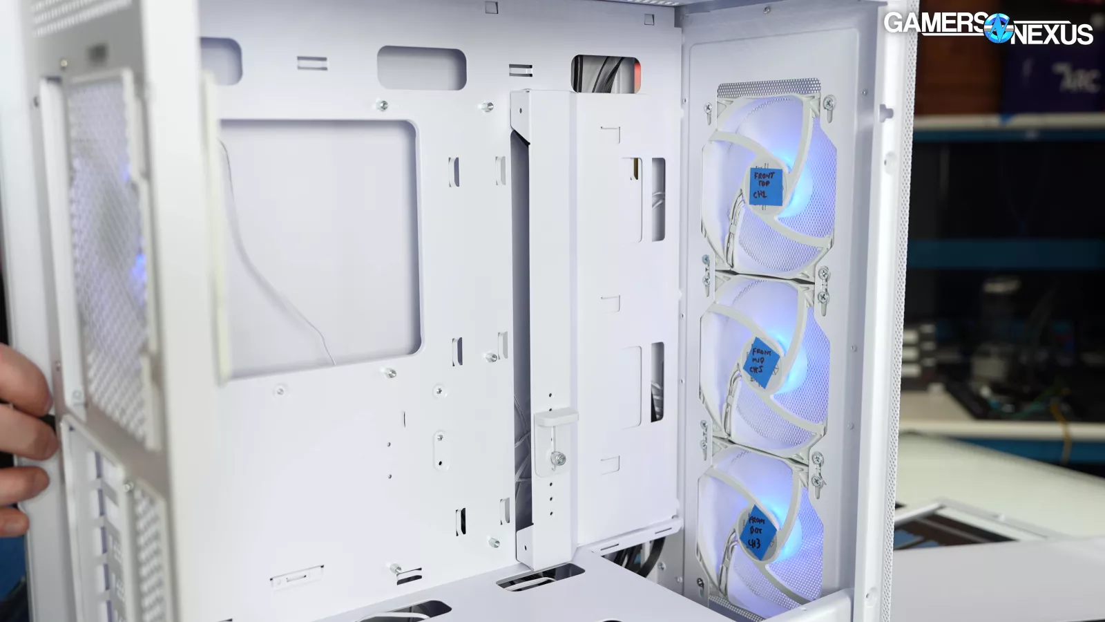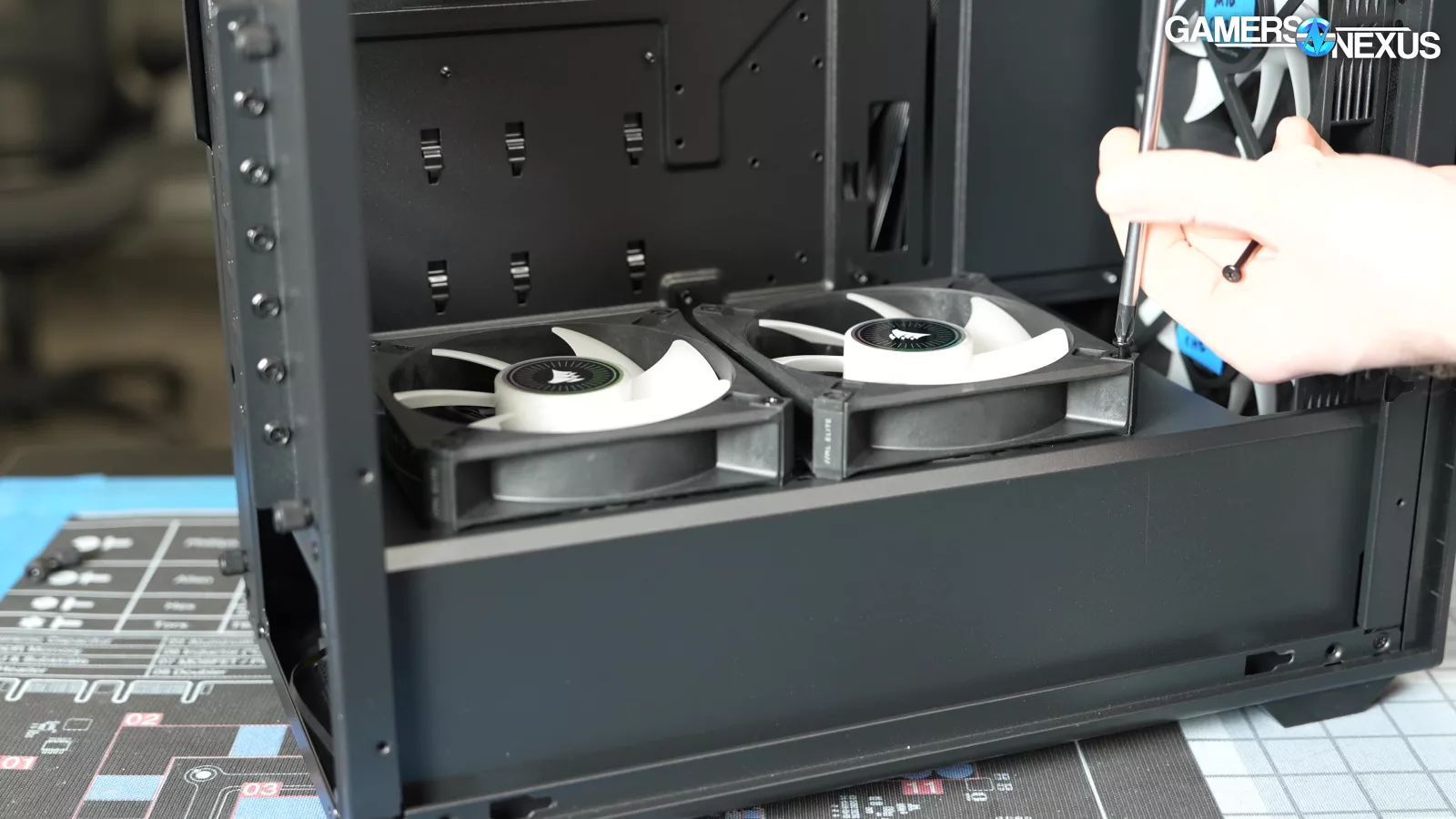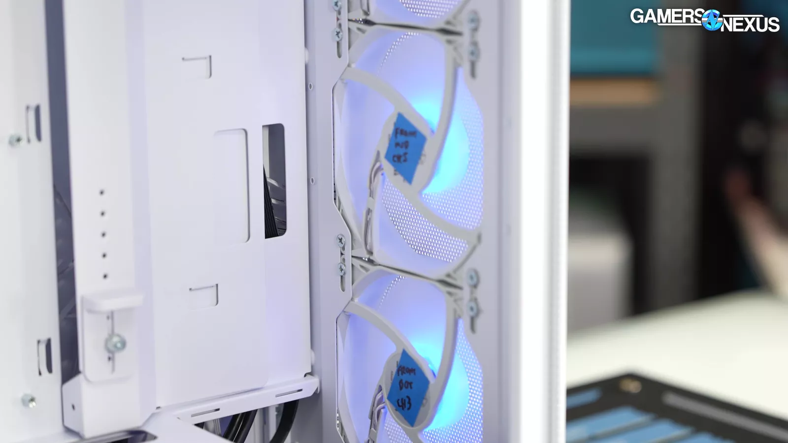 Our standardized fan test replaces all stock fans in each case with the same set of three Noctua fans: two 140mm intake, one 120mm exhaust. We have explained why there are limitations to this testing, such as worsening performance of cases which include more or larger fans. However, we run this test due to popular demand from the audience. You can find our methodology and limitations of this testing linked here.
