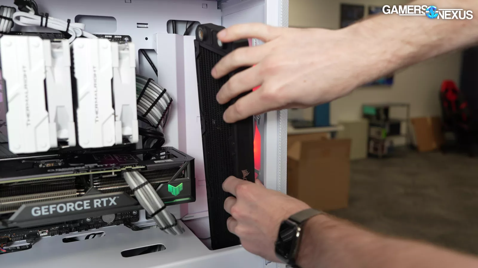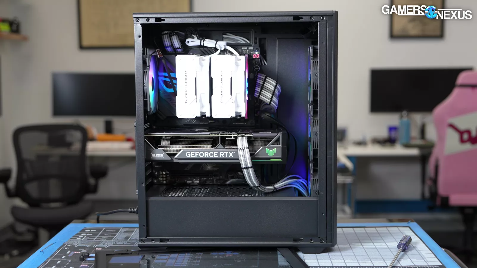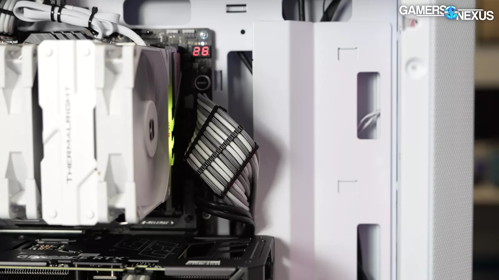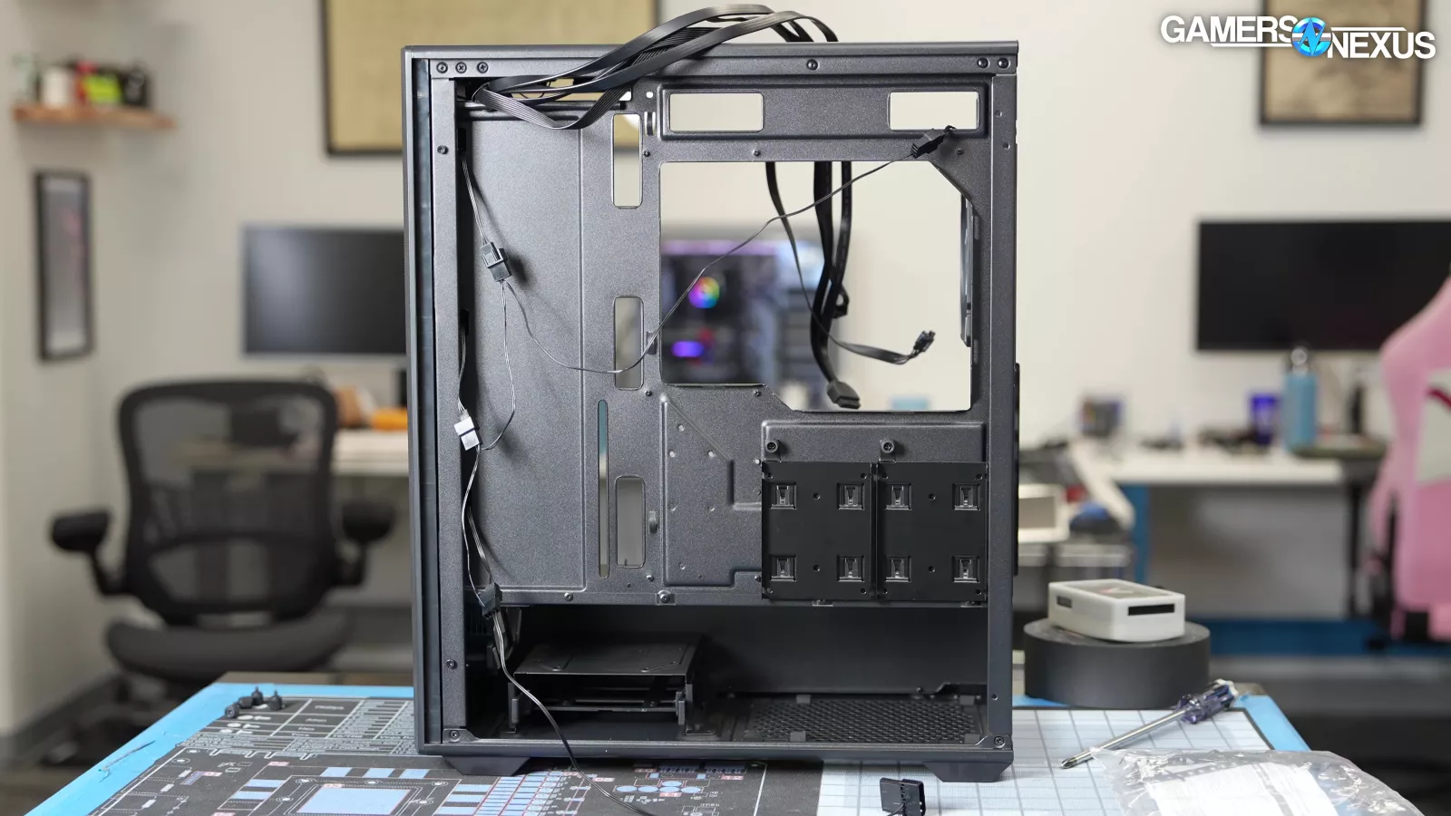 Our standardized fan test replaces all stock fans in each case with the same set of three Noctua fans: two 140mm intake, one 120mm exhaust. We have explained why there are limitations to this testing, such as worsening performance of cases which include more or larger fans. However, we run this test due to popular demand from the audience. You can find our methodology and limitations of this testing linked here.