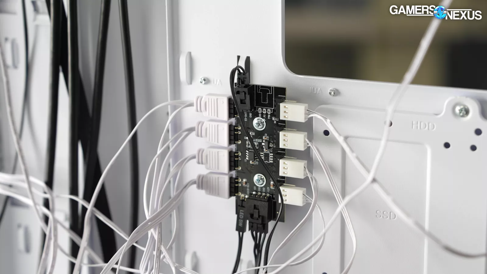 The hub doesn't have PWM speed control (though there are unpopulated pads for it), and even if it did, all four case fans are 3-pin. That’s not something we see very often these days. We always connect case fans to motherboard headers for thermal testing, which always allows speed control via voltage. The only advantage of the hub is that SilverStone uses it to pre-manage the rats' nest of cables.
