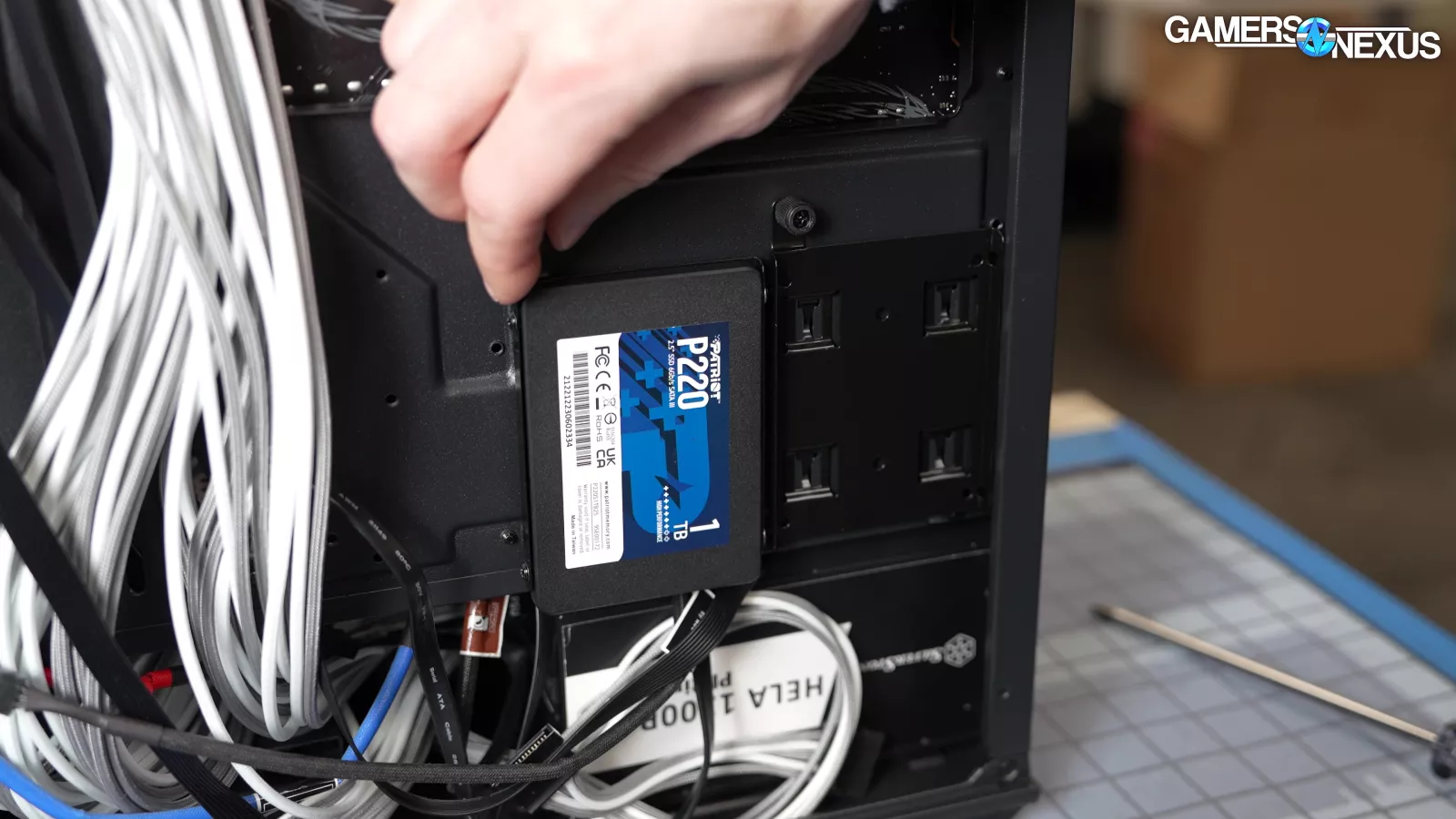 As for the lack of grommets, SilverStone advertises that a steel cover plate hides the cutouts and the cables routed through them. That's the theory, at least; we couldn't get the cover installed in its stock position. Fortunately there are two options for placing the cover (or it can be removed entirely, although the built-in GPU support relies on it. It's our policy to leave everything in place as much as possible for stock testing, but we were forced to shift the cover forward to get the 24-pin power cable connected. Moving the cover only requires removing one screw.