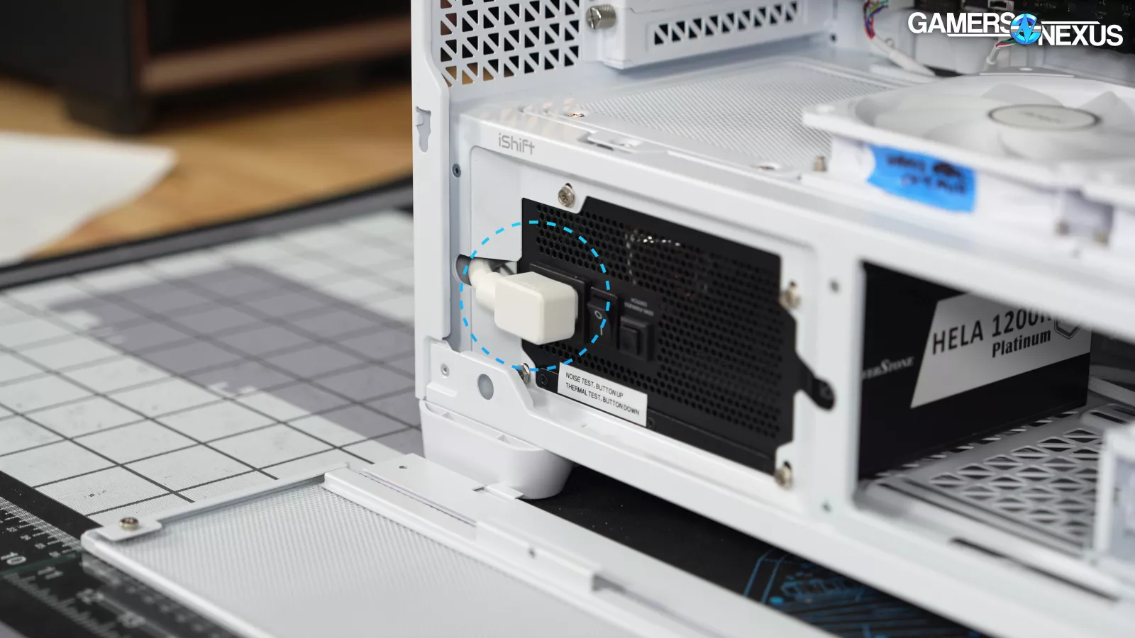 The Flux Pro has six stock fans and a lot of optional mounting locations. For our baseline, we used the stock configuration with the iShift mount to rotate the PSU 90 degrees, and then we did an additional pass with the PSU in the standard orientation. Theoretically, the iShift mount should be better for airflow. Removing the bottom HDD mount would improve it even more, but we were consciously avoiding going overboard with the additional tests.