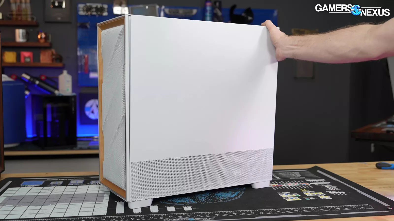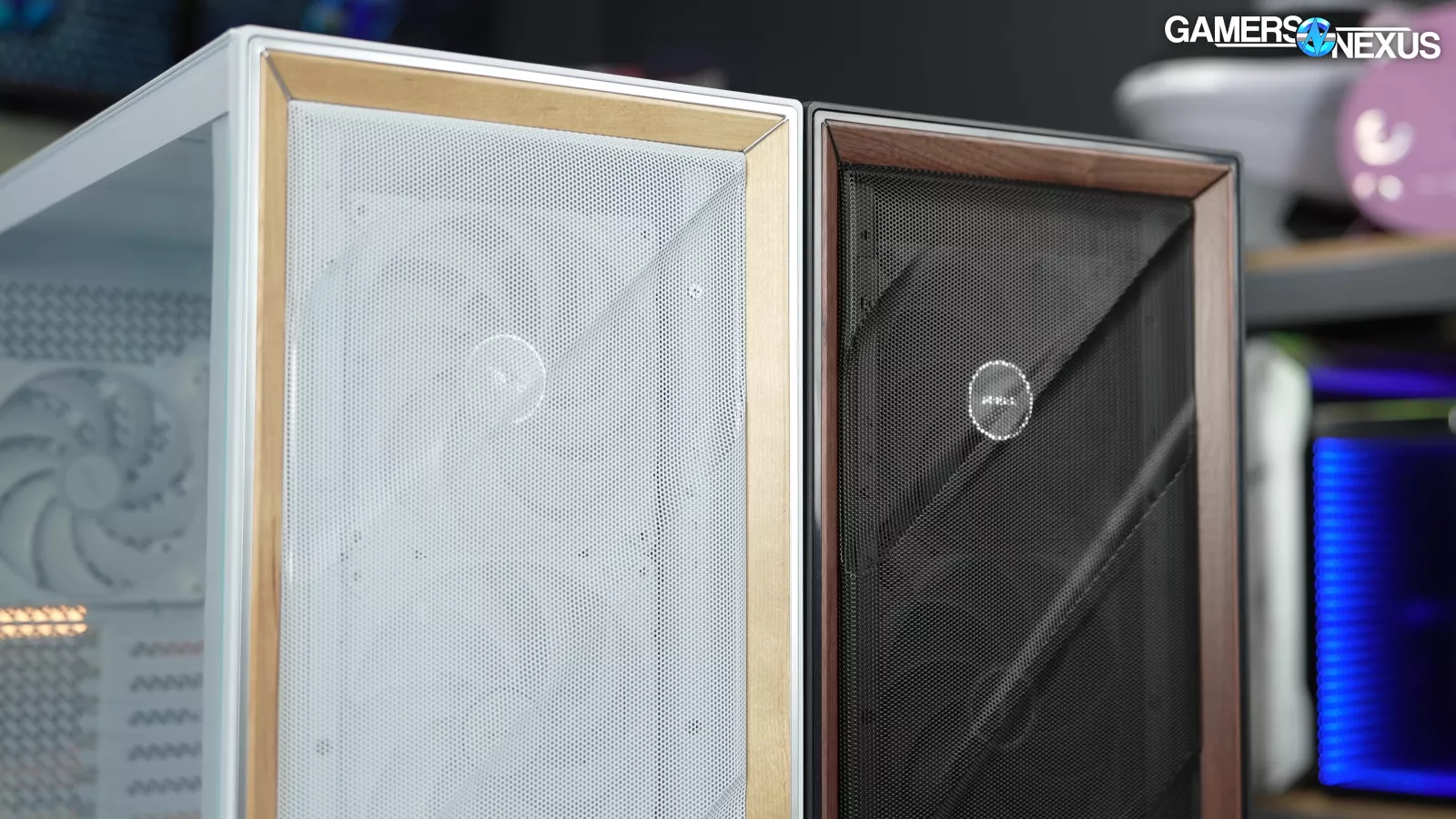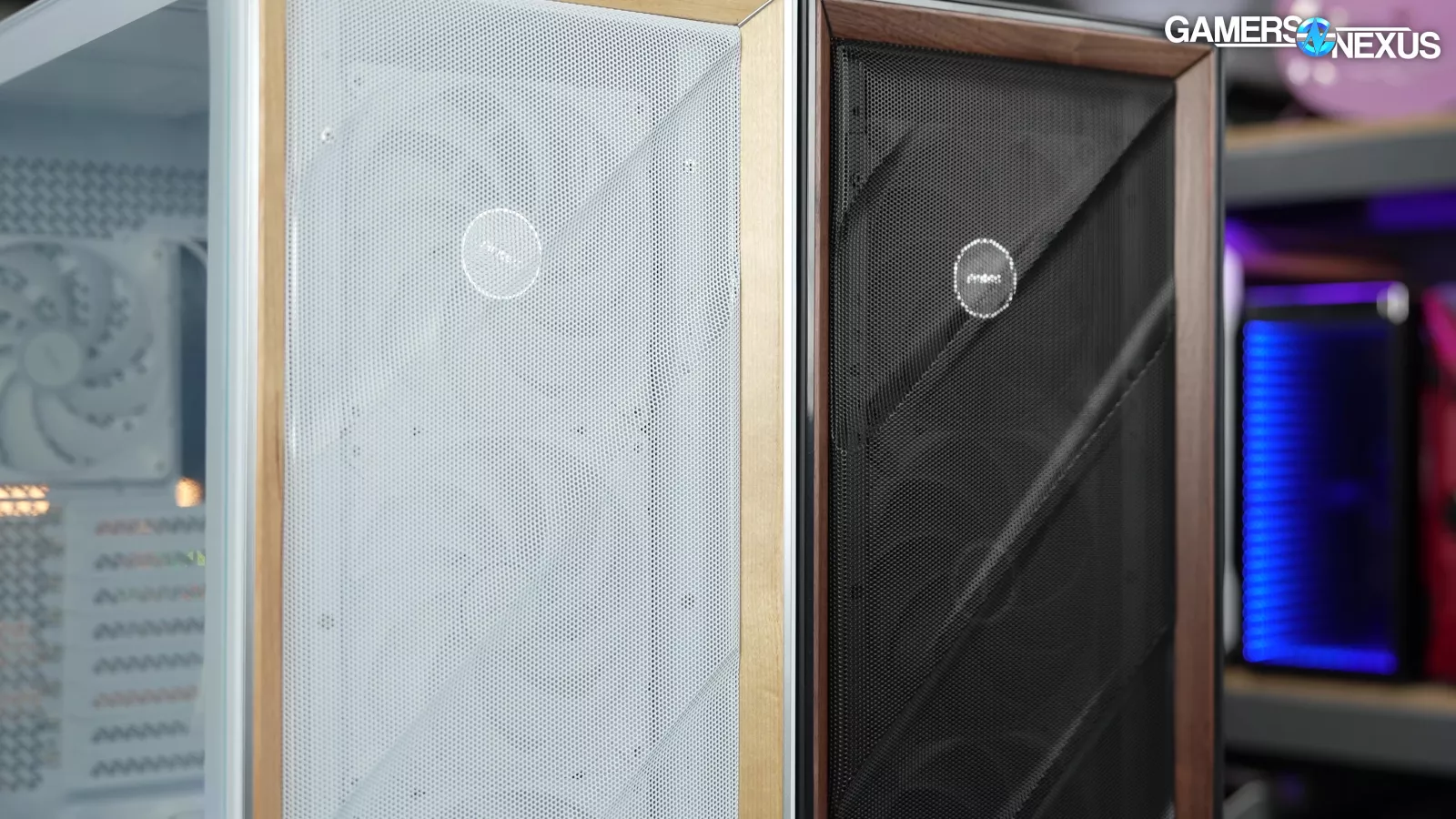 The case has a wood accent along the border, the Pro variant has a digital display on the side, and it’s heavily perforated around the lower edge for better intake access to the PSU-mounted fans.