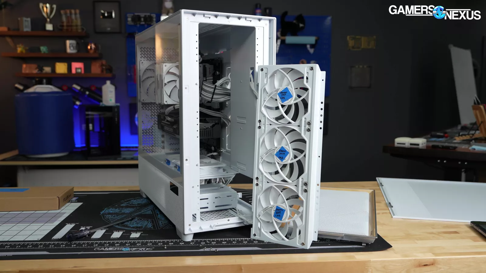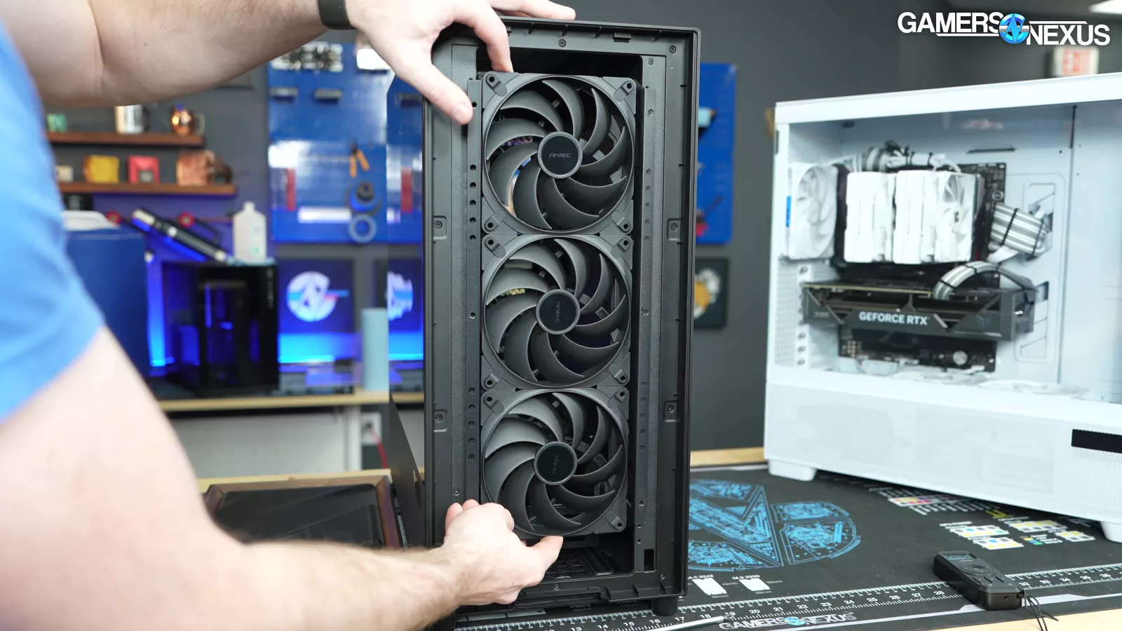 Our standardized fan test was requested by viewers years ago and has a standalone piece explaining the methodology. It has pros and cons. We have detailed them in the past. One of the downsides is hindering performance of cases that come with more or better fans. Sometimes people request tests where we populate all slots, but those actually make performance worse in many cases and pass diminishing returns.