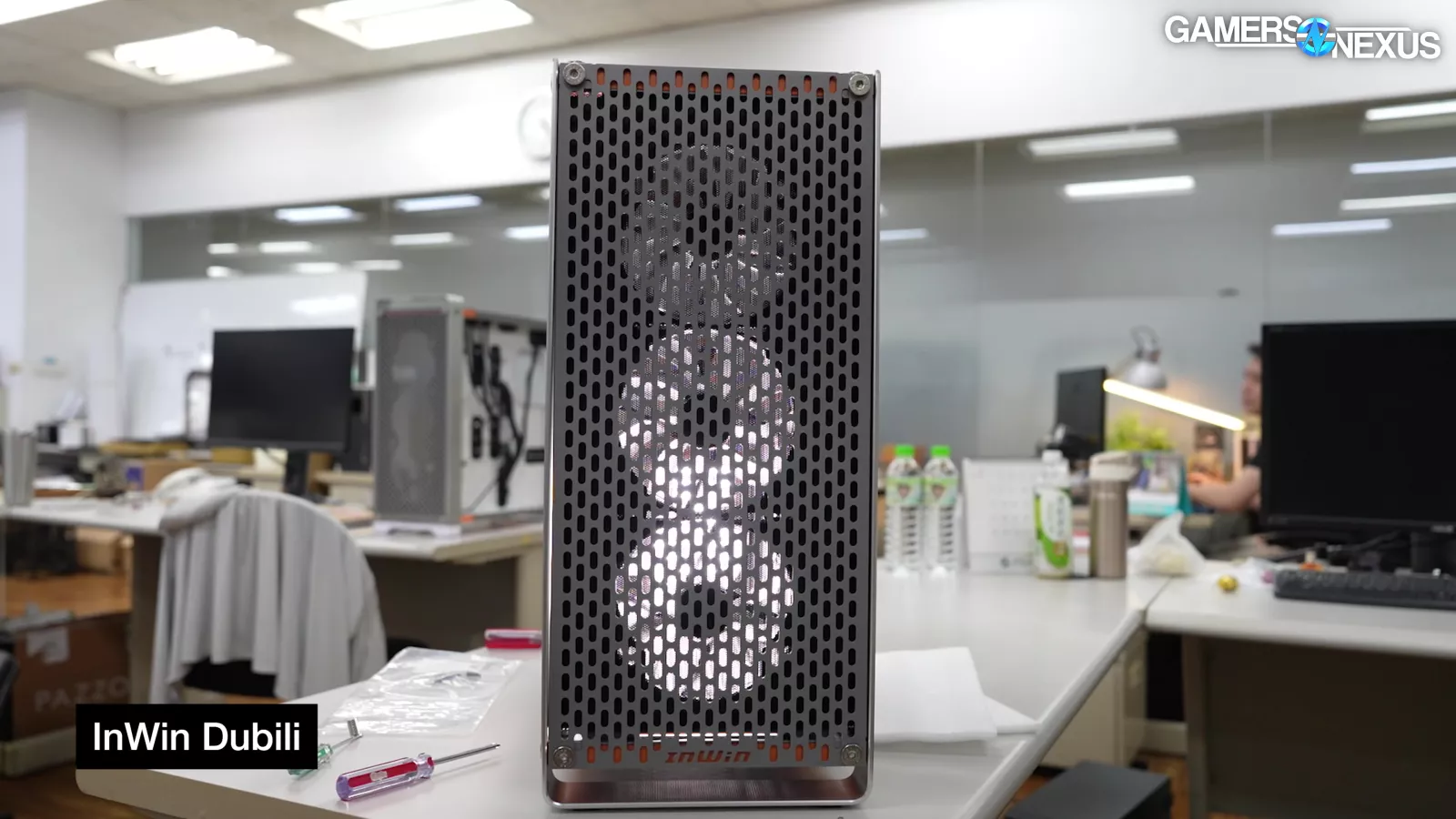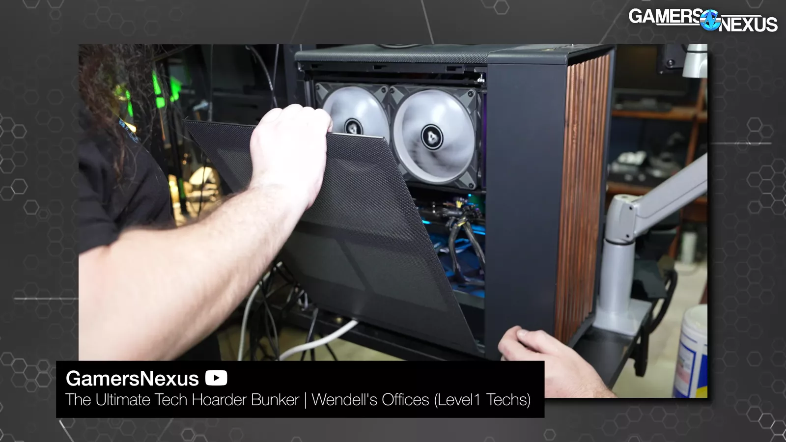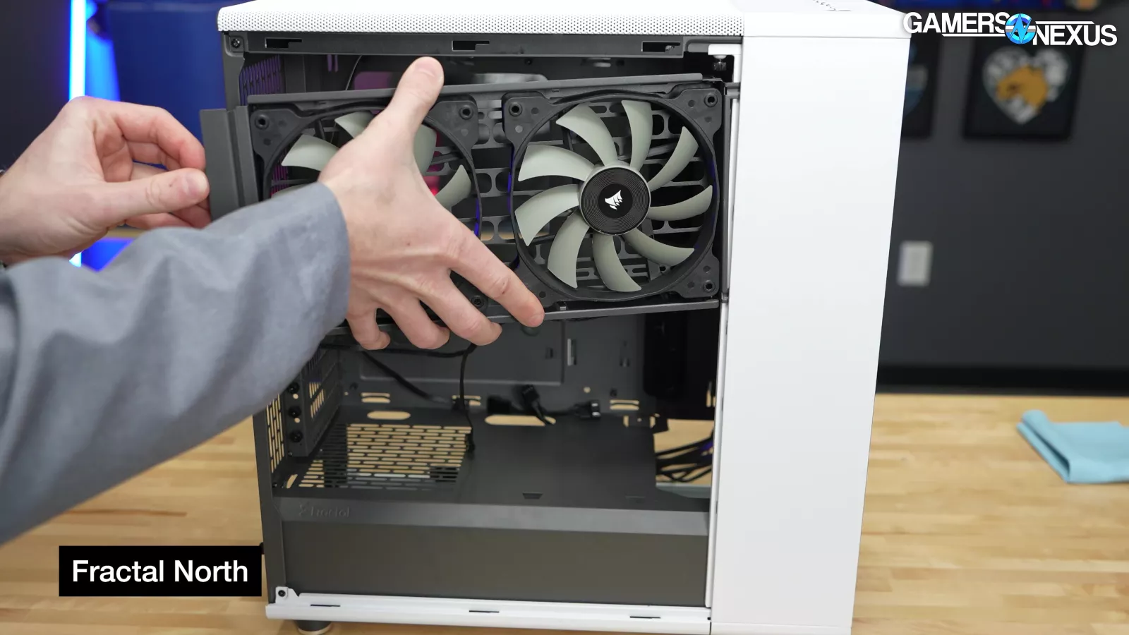 The North comes with either a glass or mesh side panel, which includes options for additional side mounts to further boost cooling performance. Actually, in our recent tour of Wendell’s offices, you can see such a configuration for one of his machines.