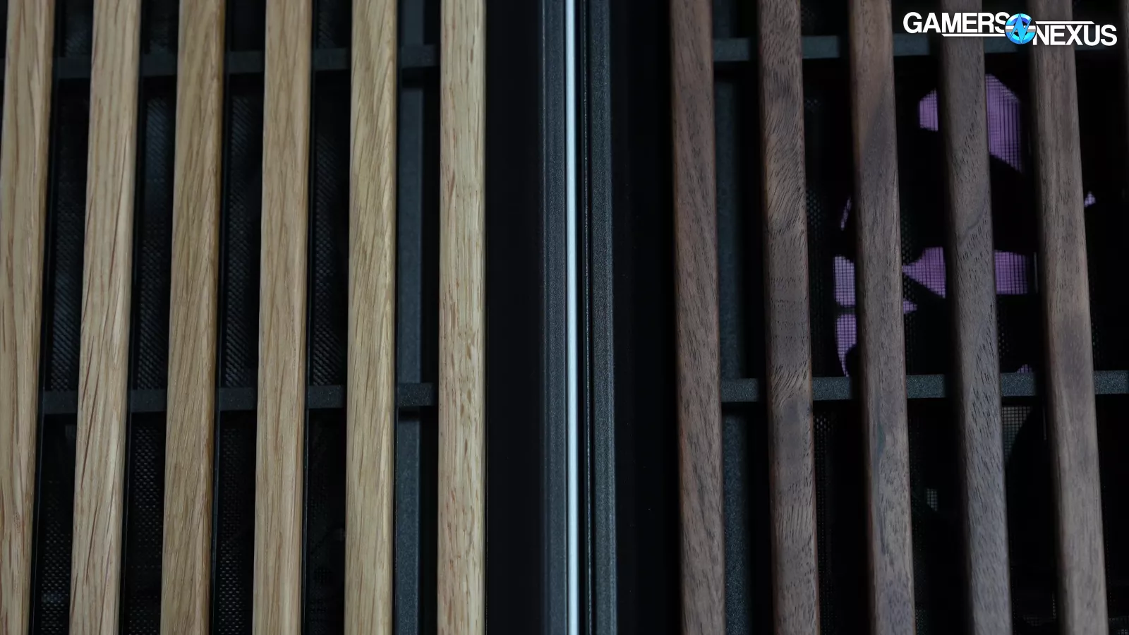 The North XL (read our review) is what we prefer to the North, mostly for its increased size for easier building and for our style of build, but both are good takes on the theme. Visually, the wood look doesn’t look like the slapped-on Vinyl style we see in other cases. It looks more purposeful. Fractal also does great work mixing different tone wood coloring with different panel coloring, including matching the black case with gold accents and the white case with silver accents.