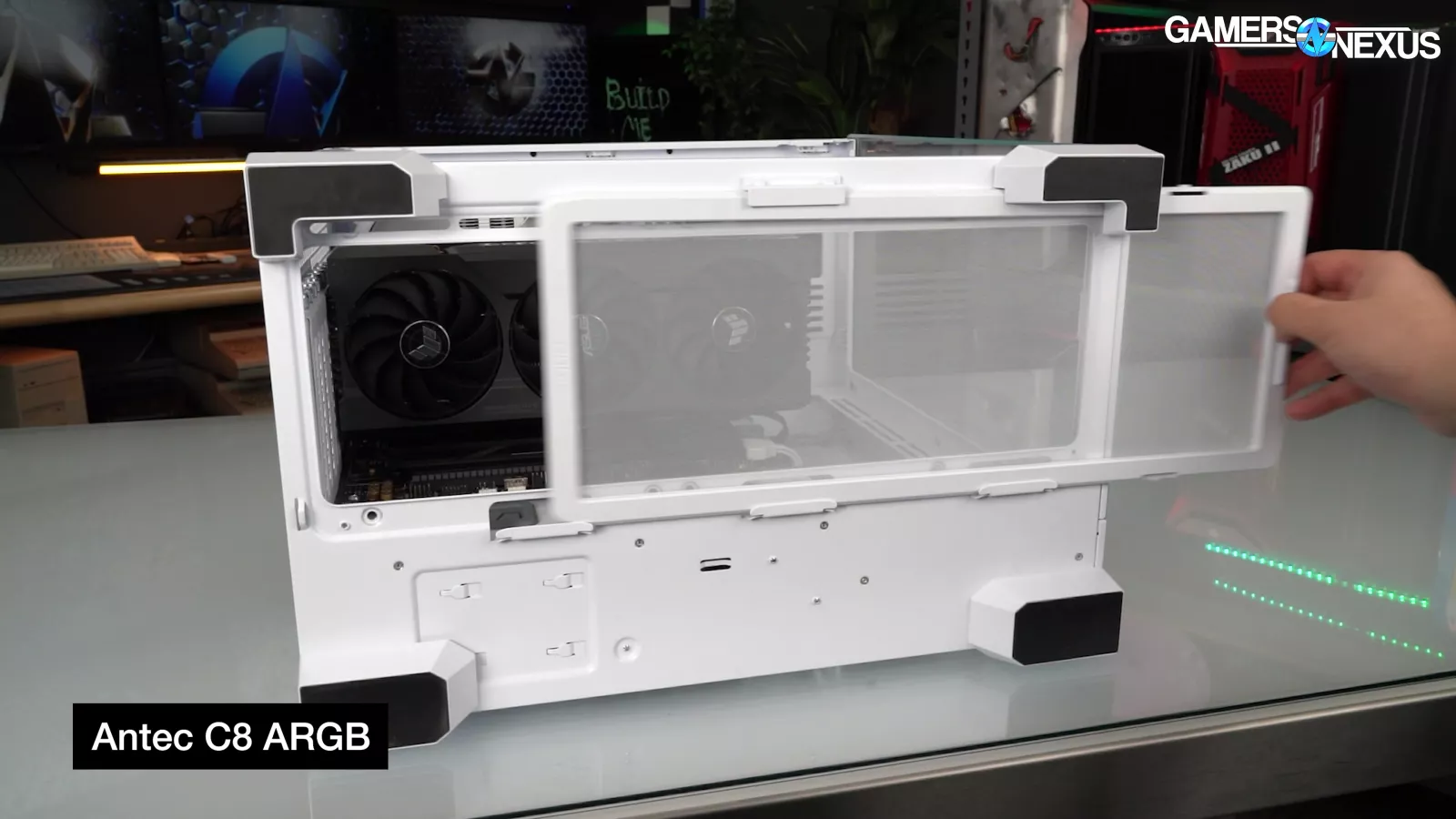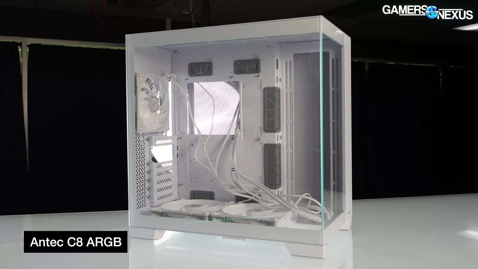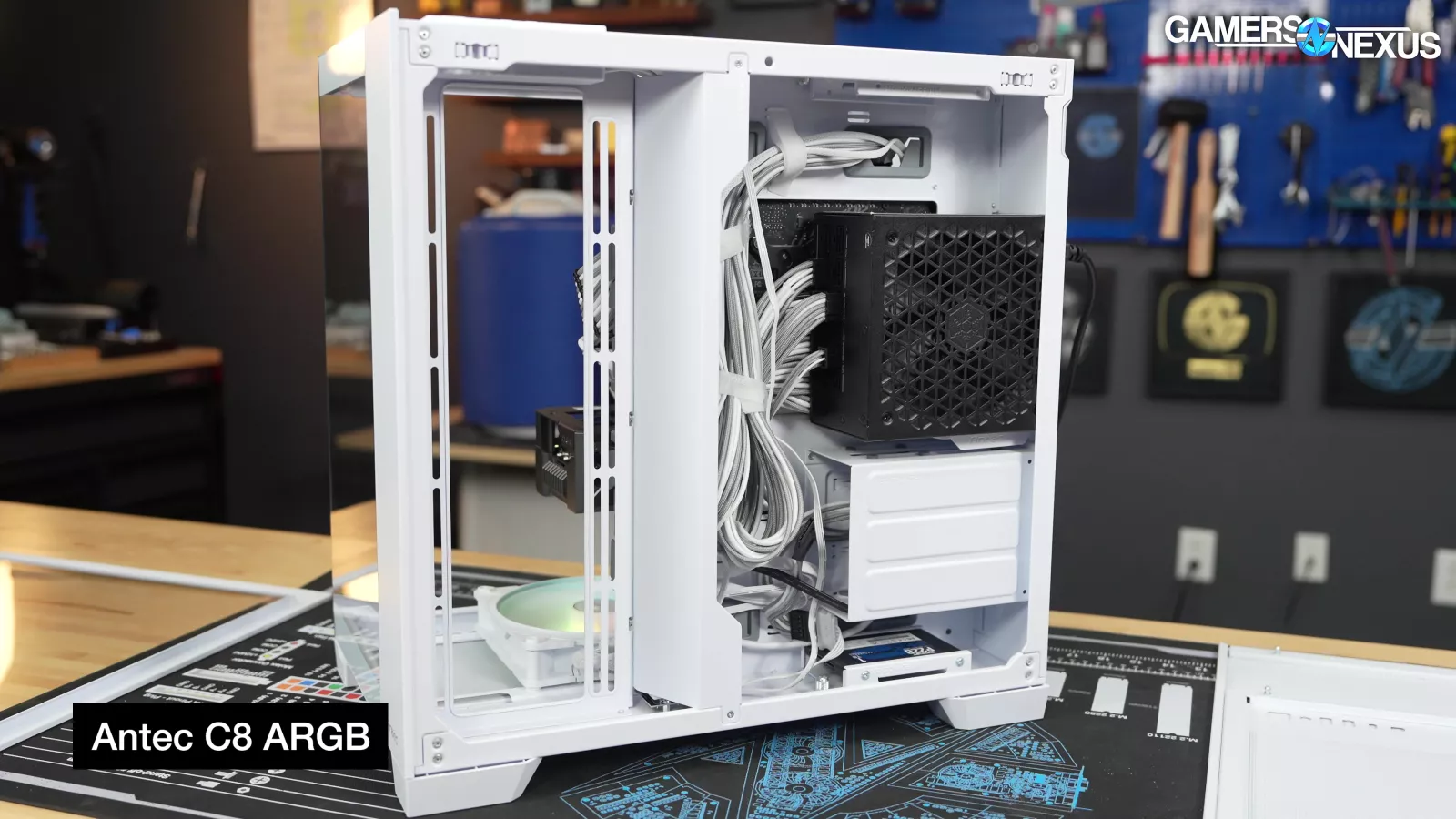 The C8's dual chamber layout isn’t new, but Antec impressed us with the level of care that it put into details like molding text into the fan frames, color-matching all the components in the white SKU, and the accessory kit. Small touches, even ones that aren't functional, add up to create a product that feels worth the price. The C8's appearance reminds us of the clean designs that made Corsair's 4000D Airflow (and 5000D, and 7000D, et cetera) so appealing, but we much prefer Antec's case to the directly comparable Corsair 6500D Airflow.