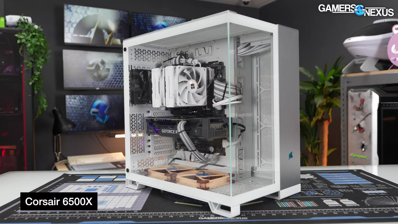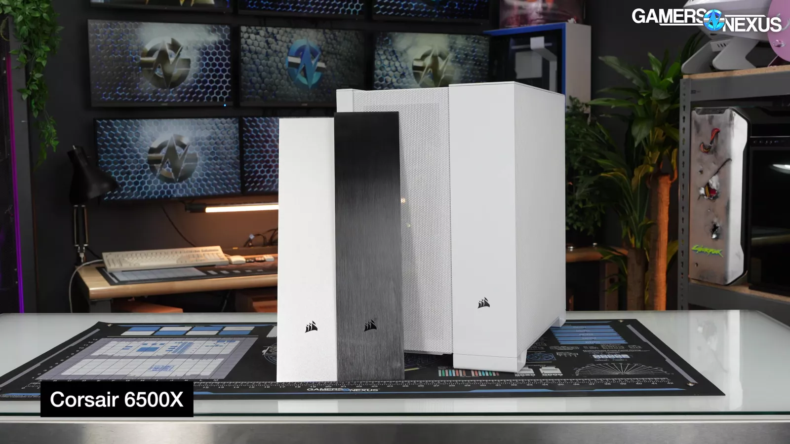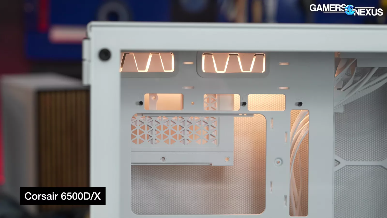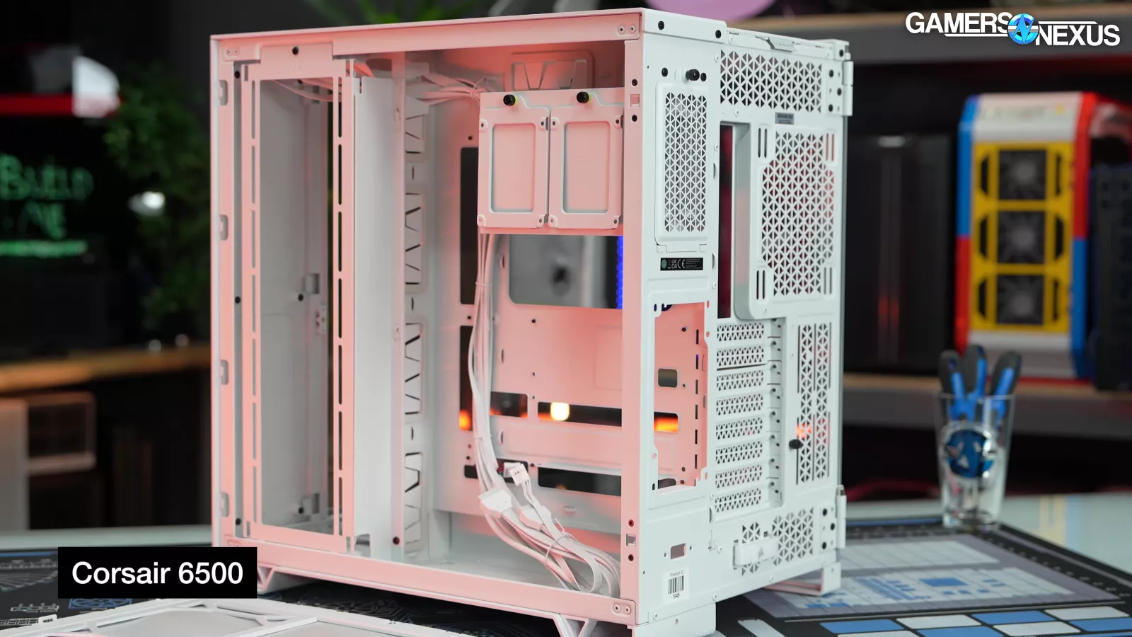 But then it launched the 6500 (read our review) series this year, attempting to jump onto a hype train that had already left the station, and doing so with substandard build quality. The Corsair 6500D and 6500X were $200 without fans, both featuring superbly bendy panels without any reinforcement -- which we found totally unacceptable for a $200 so-called “Premium” case. There were lots of plastics, misaligned panels, and build quality issues.