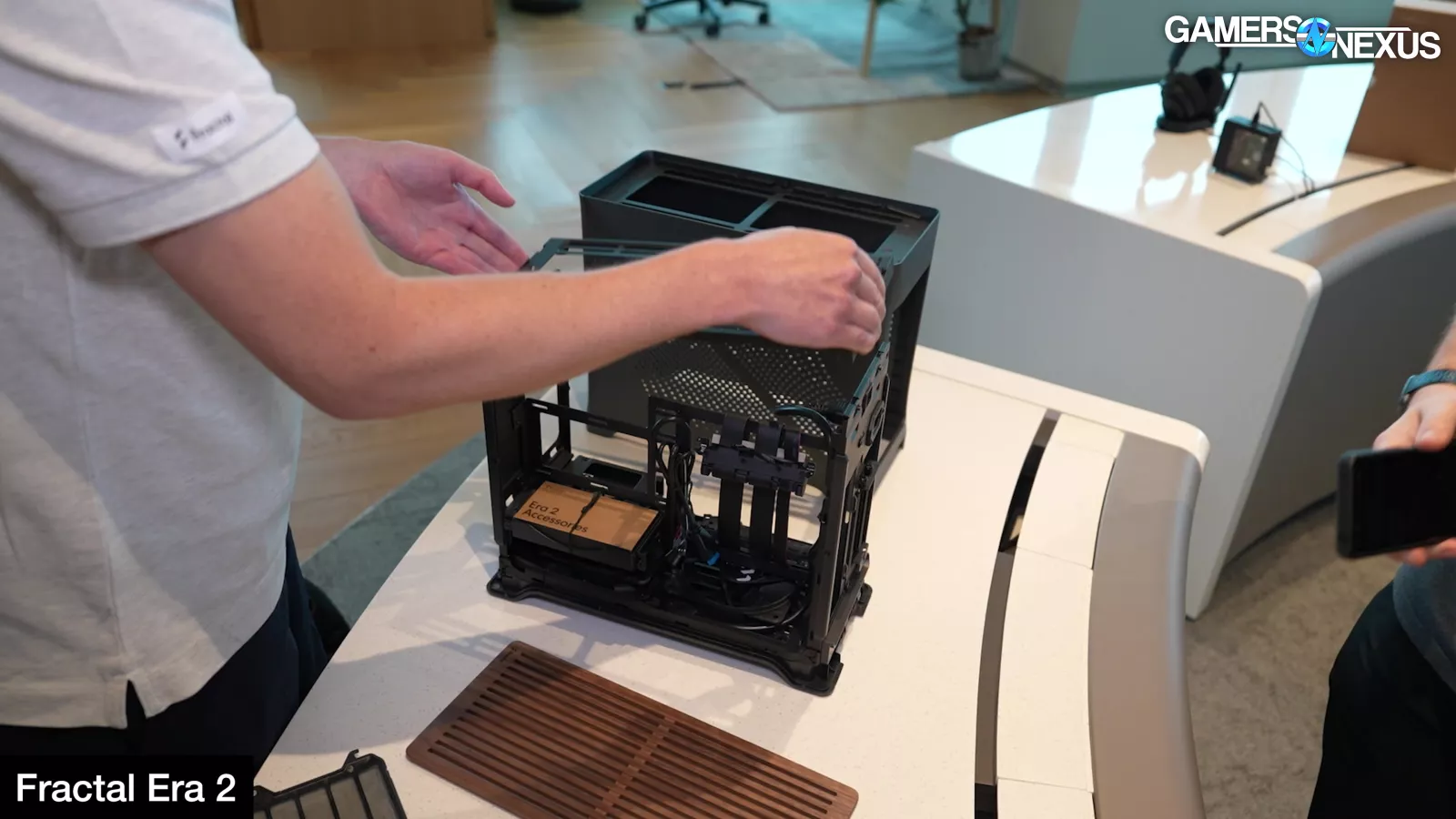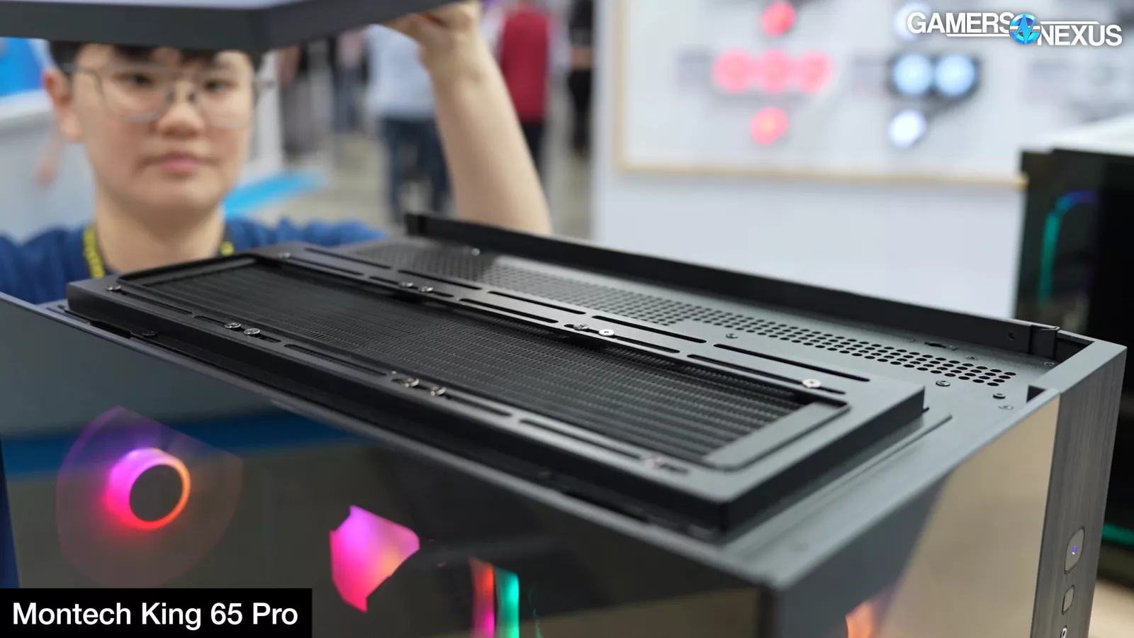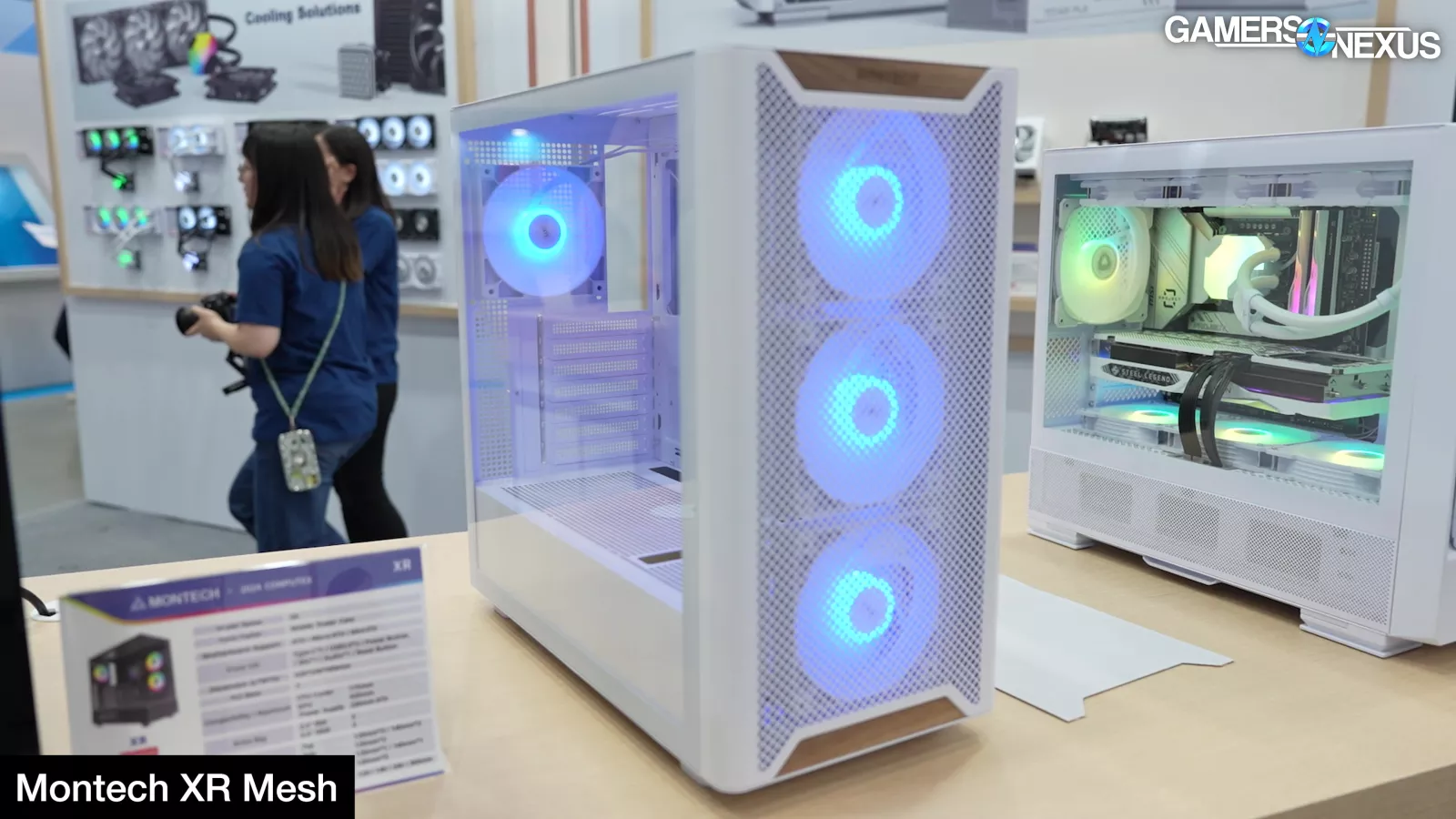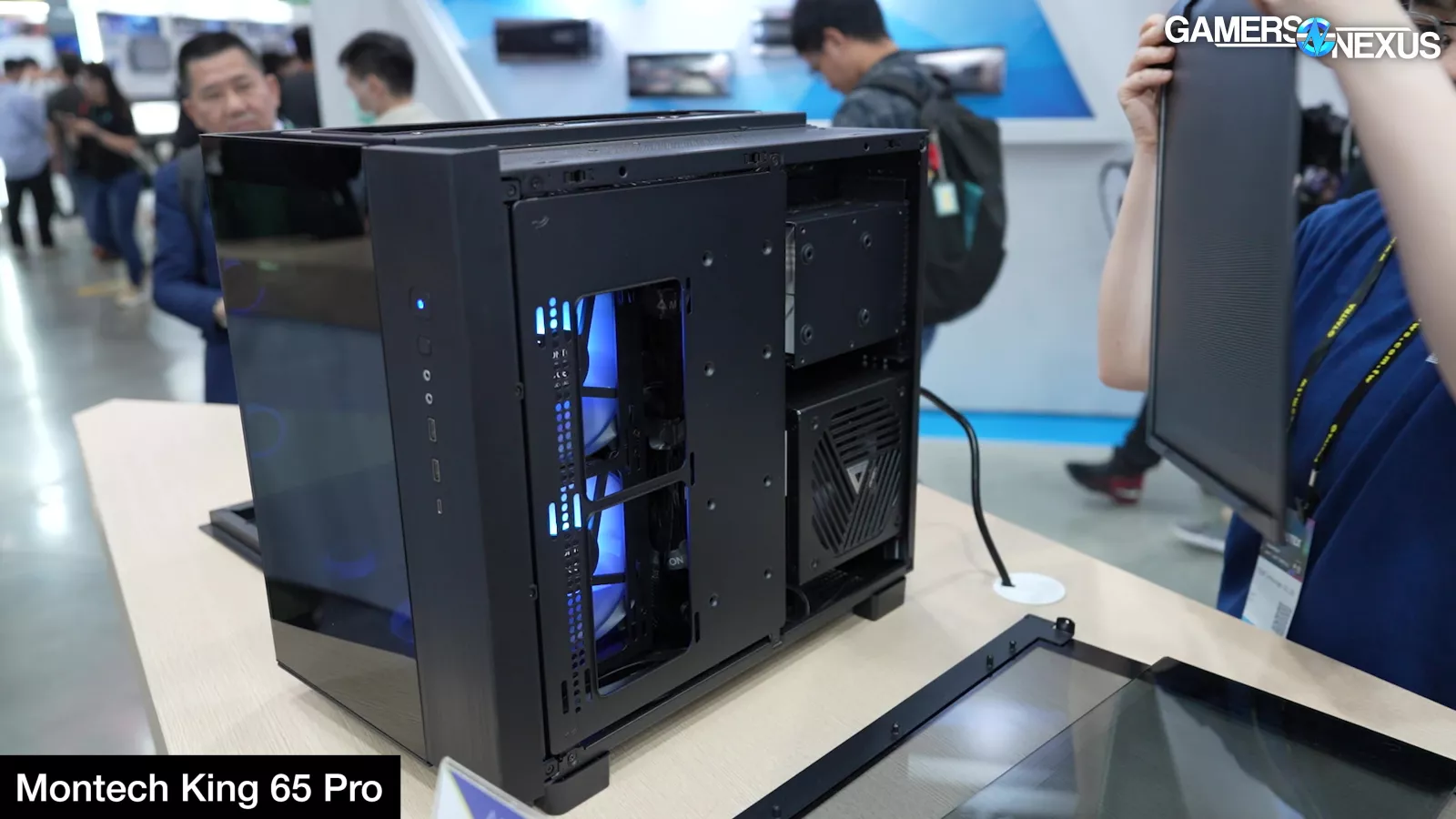 The last few weeks of case announcements have been completely overwhelming -- and a lot of them look actually pretty good. One of the case manufacturers described the current case market as “a bloodbath,” saying that budget, high-performance airflow cases are getting so cheap and good that it’s hard to compete. Some of the most interesting cases at the show included Lian Li’s LanCool 207 with its sunken-floor intake fans for GPU cooling, be quiet!’s Light Base 600 and 900 cases with their flat style layout, Montech’s $64 XR glass fish tank and $70 XR Mesh airflow cases, Phanteks’ G400A for a budget ultra-airflow case, and SilverStone’s Alta D1 for some mechanically impressive functionality. And then there’s the usual showstopper from In Win, this time using a 180-degree bend of straight-up glass -- not even tempered -- with aluminum and a linear actuator to open it all. And the actual showstopper: Fractal’s PiNorth case that uses actual North wood paneling for a Raspberry Pi, but technically isn’t launching. But that’ll change now.