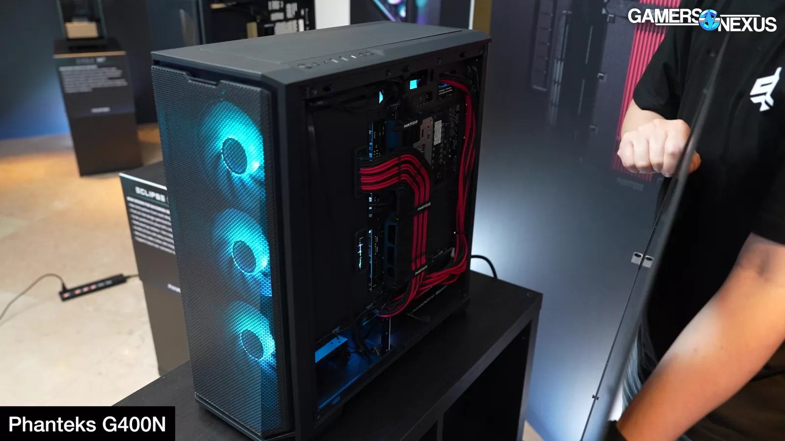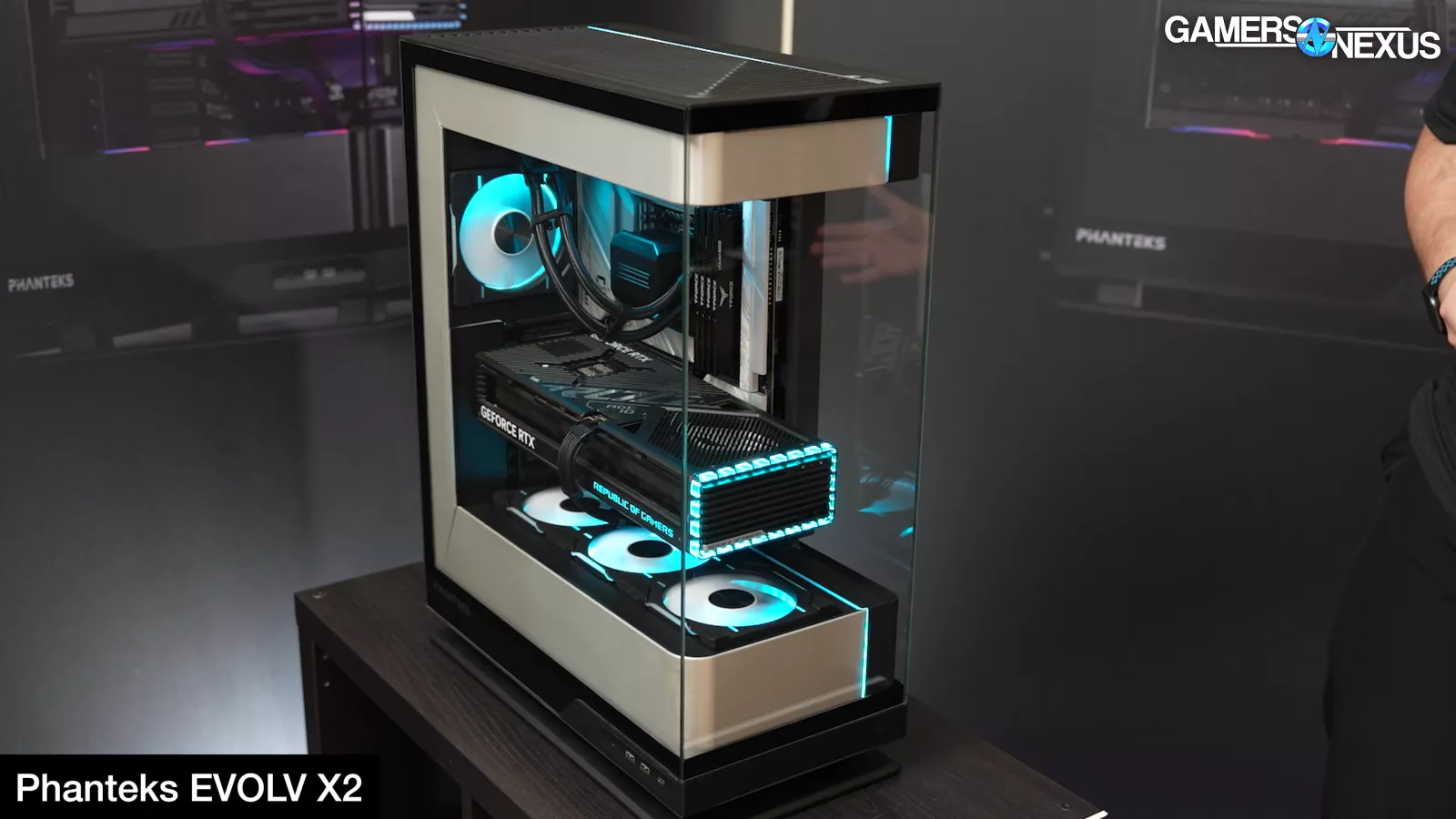 Phanteks also had a workstation variant of its Enthoo series cases, some refreshed NV-series cases with back-connect support, and its new Evolv X2 prototype fish tank that it hopes to sell for around $150, which would make it pretty competitive in that market.