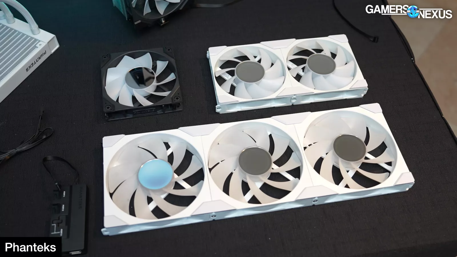 Other Phanteks products included 3 interconnecting fans as a pack intended to sell for $30, which would make them some of the cheapest interconnecting fans on the market. They also had an Arctic competitor liquid cooler that'll use those fans. We'll talk about the cooler in a future review. Back to the cases though, the Evolv X2 would be promising if it can hit that price of $150. The prototype uses aluminum for the interior shroud, which would definitely make it expensive but looks good.
