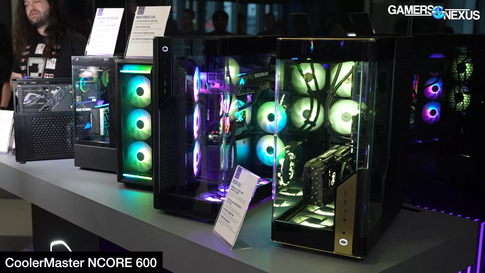 Cooler Master is also back this year. It's been a long time since Cooler Master turned-around its case design by departing from the H500P and moving to the H500P Mesh. We strongly recommended the Mesh and later H500M and TD500 as a result of Cooler Master's significant improvements in its design. Since then though, they haven't had as much exciting stuff because a lot of their cases got kind of smashed by the tax and tariff changes, which eliminated them from the markets.
