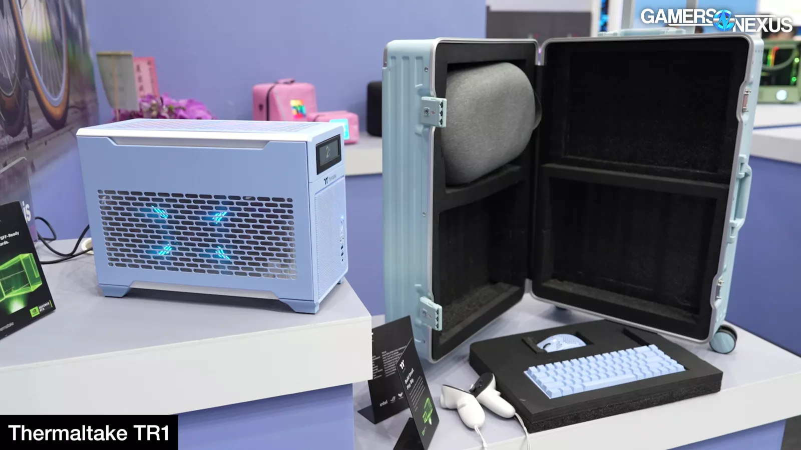 Thermaltake gets a mention for its TR1 ITX case, which it intends to design specifically for travel. To truly hit the travel market, we think it needs some screws to lock the panels in place and definitely a strap or handle of some kind, but it’s still in design stages. Overall, we liked the color combinations and execution. They’re trying to hit the $100 to $120 price point. This case isn't final yet and will be expanding in depth, so since it still needs some time to bake, we'll move on -- but it's on the radar.