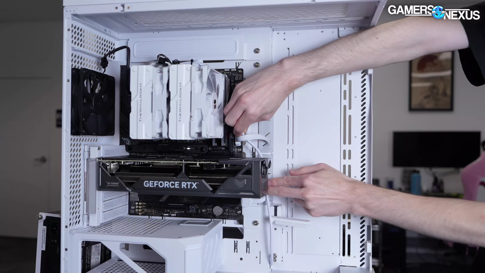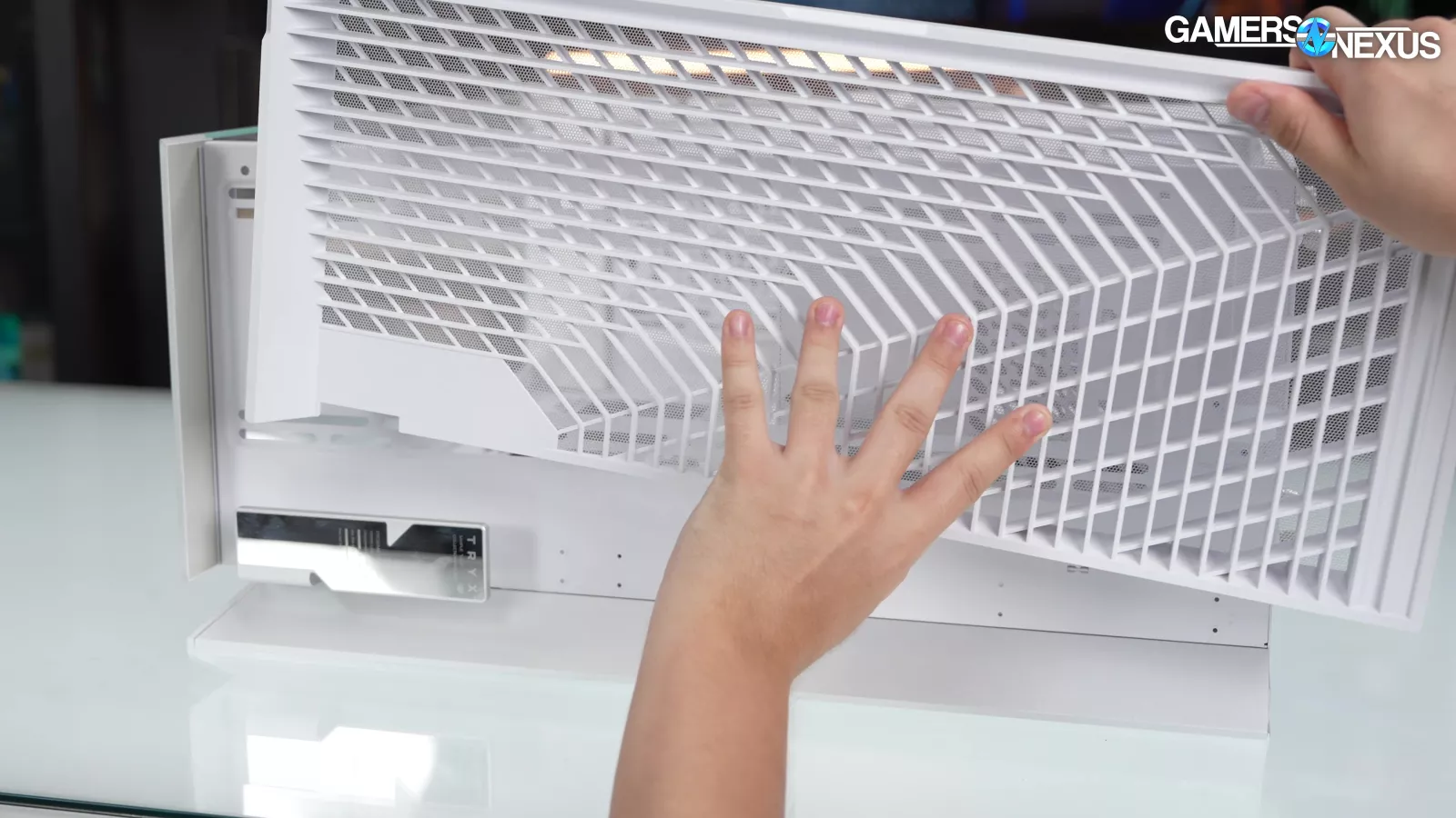 The change may seem counterintuitive since the bottom intake slots are directly beneath the GPU, but those slots are far more restricted than the side intake ones, to the extent that one of the fans is basically useless.