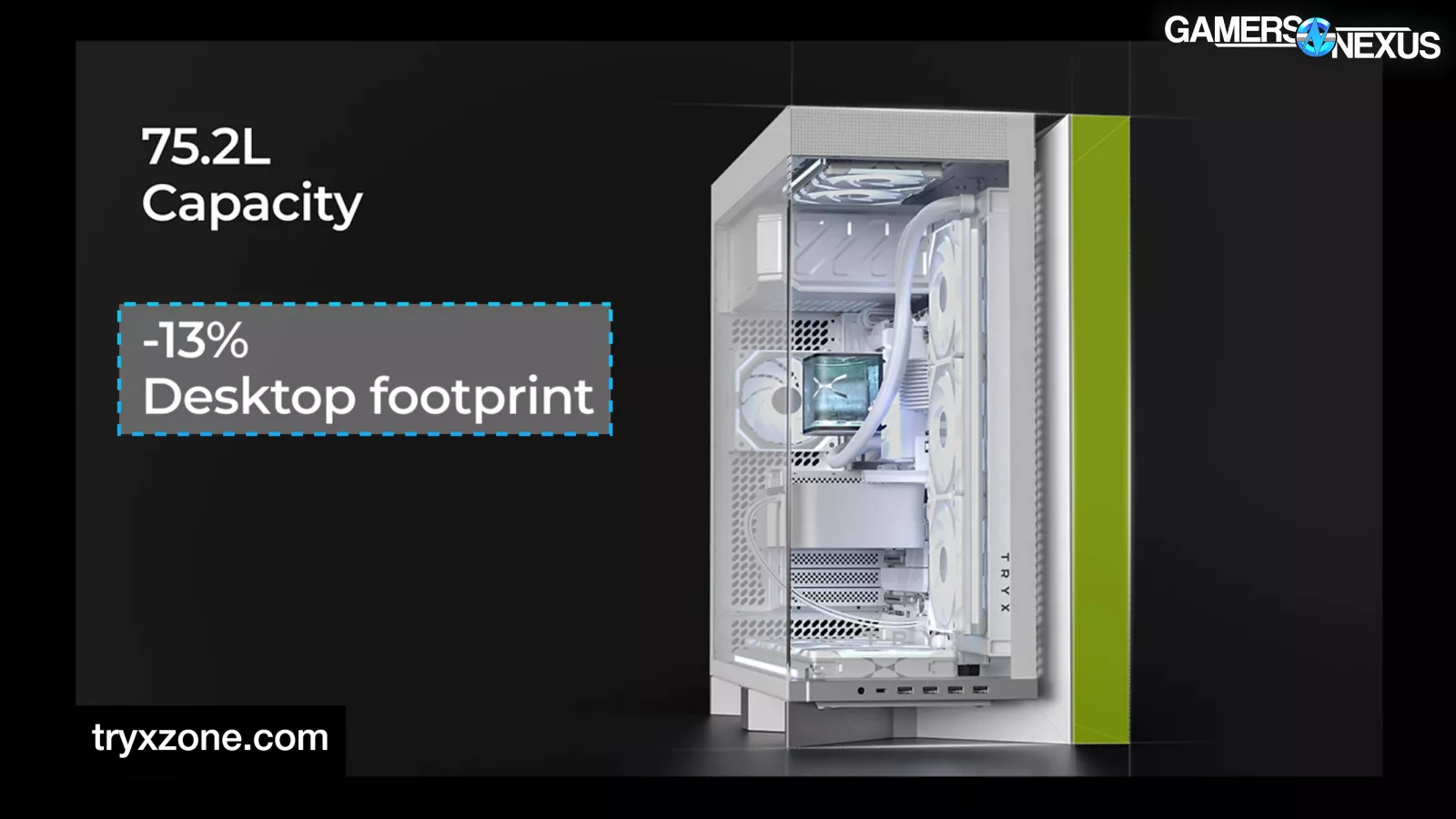 Tryx also makes the claim that the case is “-13% smaller desktop footprint.” Now, you might ask, “13% smaller than what?” After asking, we learned that this is apparently in comparison to dual-chamber cases. Now, again, the natural inclination is to ask about which one. It’s made-up. No one knows.
