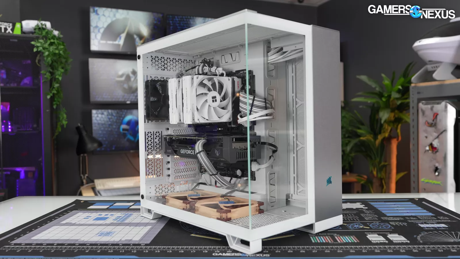 Now for thermal testing. We're covering both the 6500X and the 6500D Airflow here, neither of which come with case fans, so we used the standardized set of Noctua fans for most testing. The exception is that the side mount only fits 120mm fans, so for side intake tests we changed out the usual two Noctua 140mm fans for two Arctic P12 Max fans.