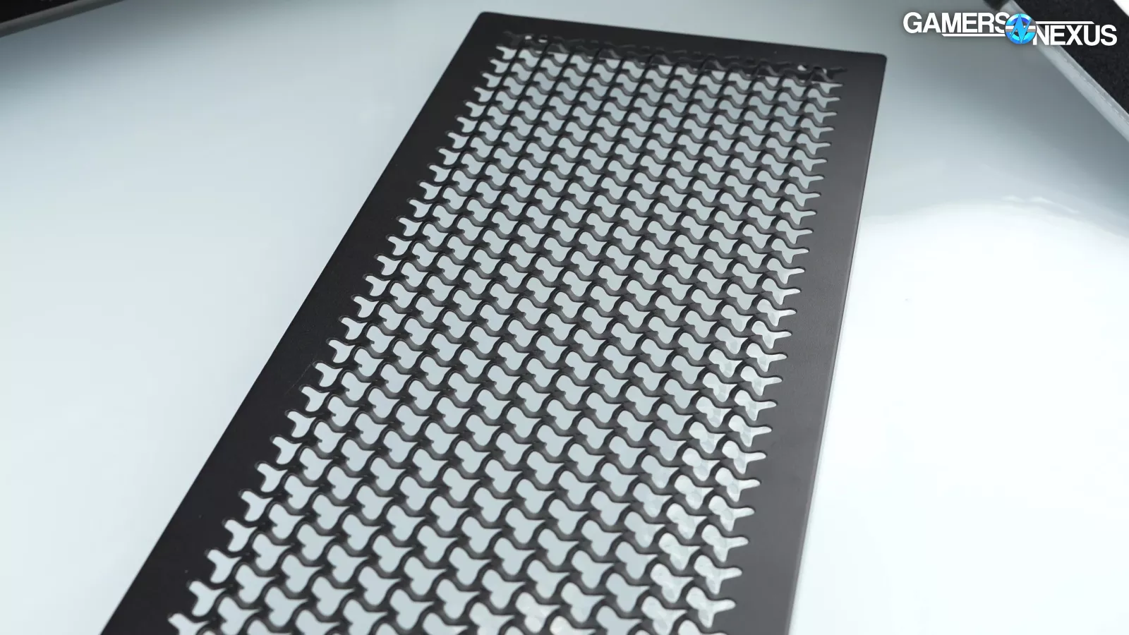 On the positives for build quality, the elaborate stamped 3D pattern on the front panel is much sturdier than it looks. We'll have thermal results later in this review, but the Frame 4000D's front panel appears more open than the 4000D Airflow's (watch our review) while retaining most of its rigidity.