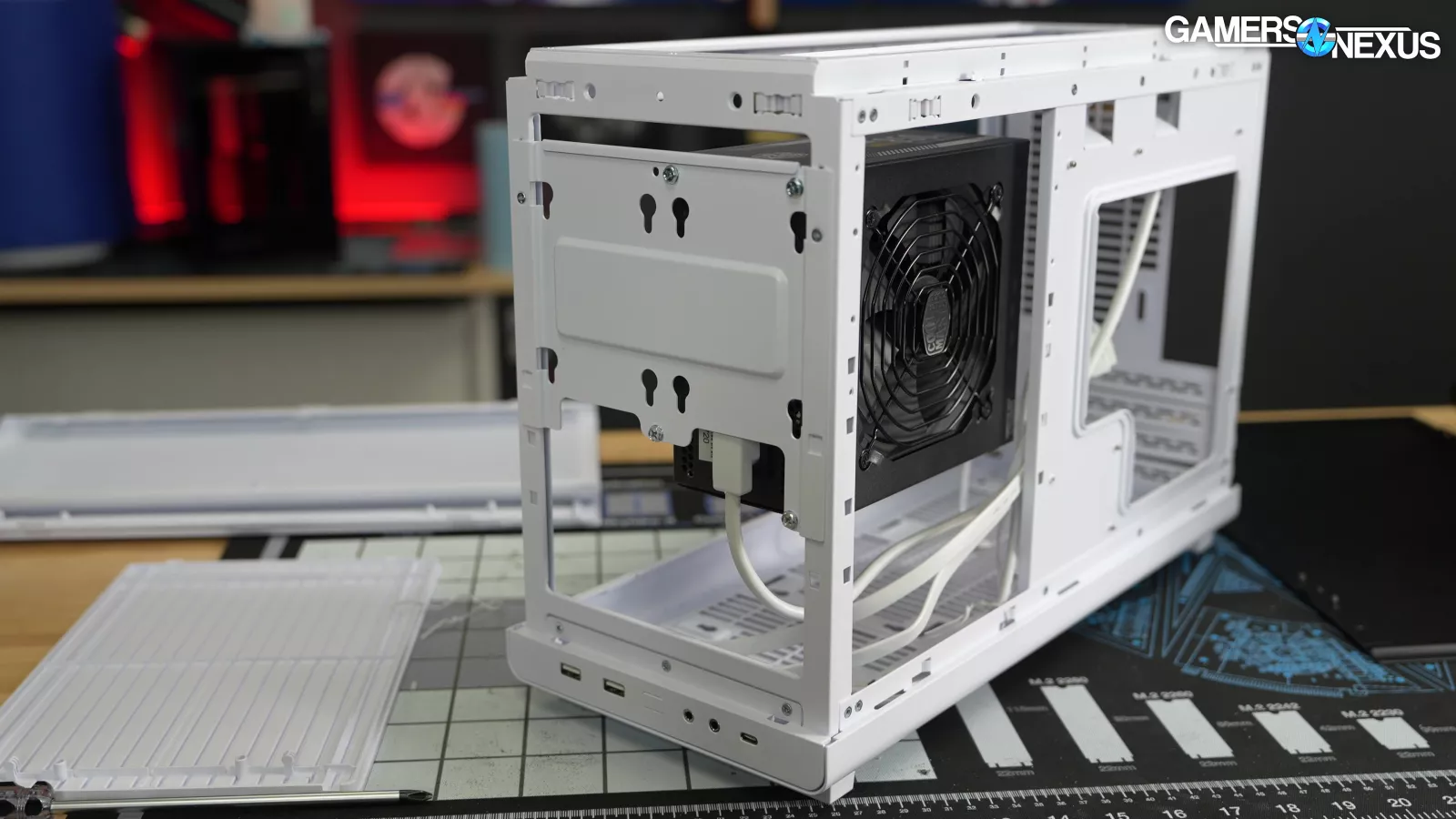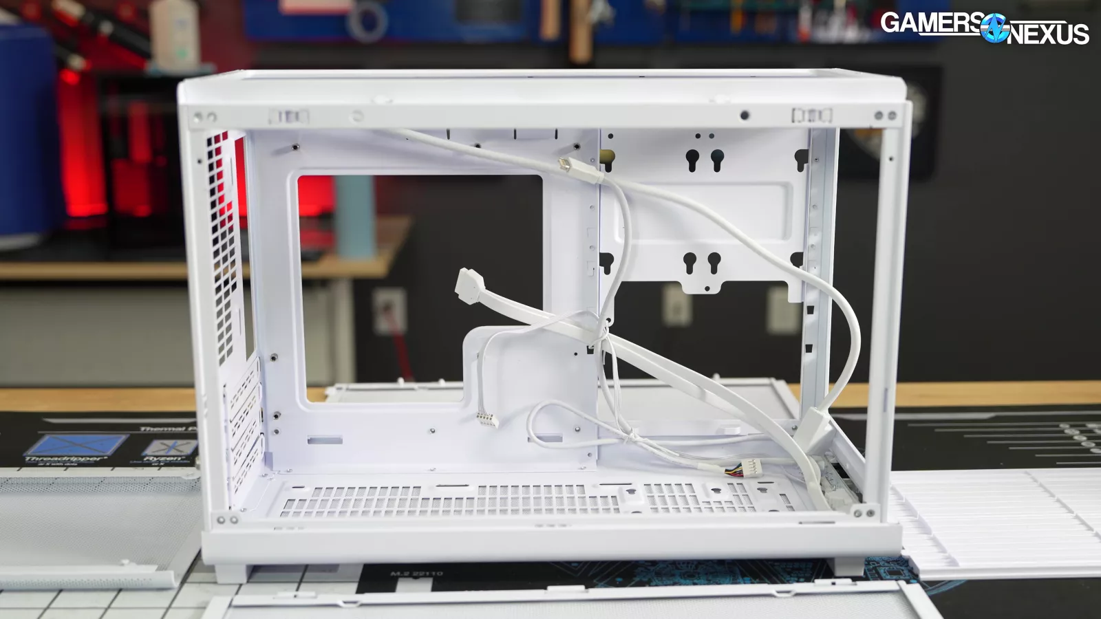 White is known in the industry to be a challenge for color matching across materials. On the white version, the color doesn’t match across some of the internal cables, connectors, and the AC power plug on the rear of the case.