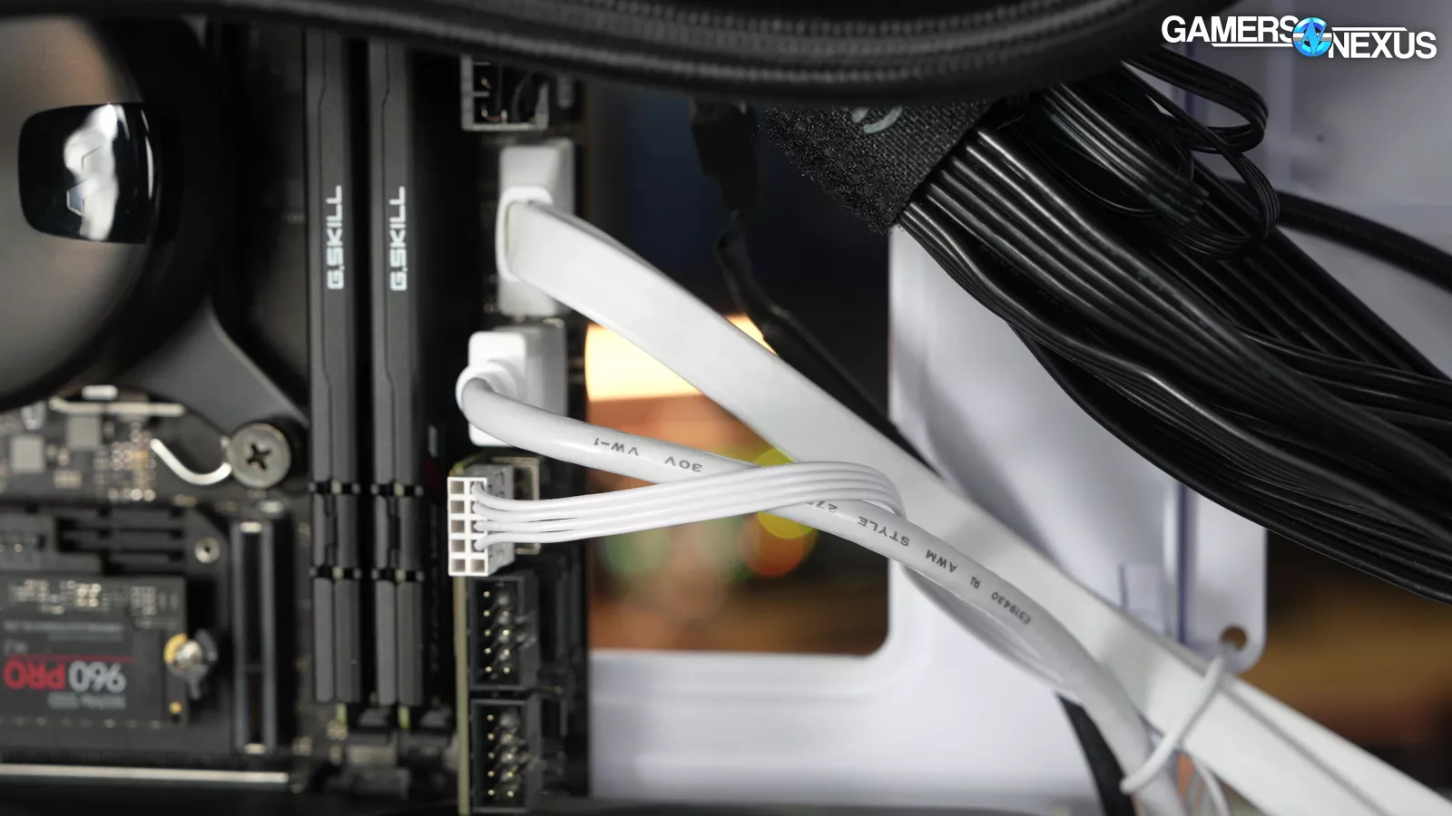 Installing a CLC in the top of the case blocks off access to the top edge of the motherboard, so pre-running those cables first is something we’d strongly advise. This could have been mitigated by the top fan bracket also being removable and allowing for cable adjustments after the fact, but would likely add cost.