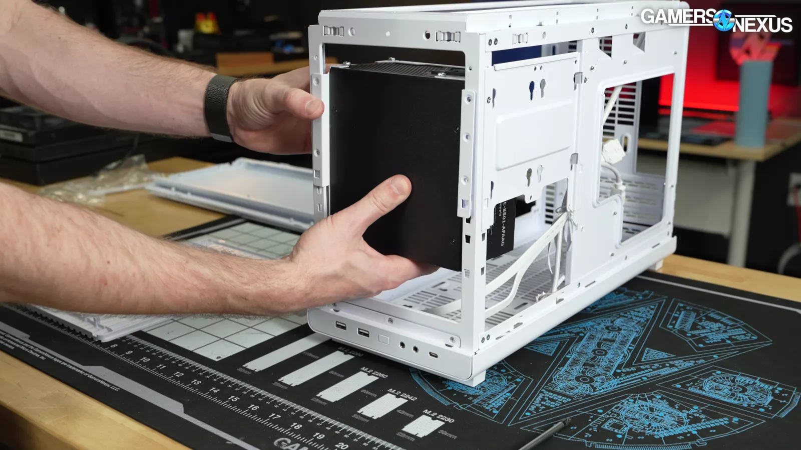 The case also comes with side mount options. We actually observed that the side mount makes it possible to worsen GPU thermals in a way that may seem counter-intuitive, so let’s explore that.