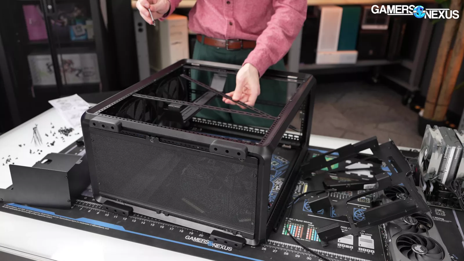 It’s assembled of just corners and columns, which allows modularity; although, it was a letdown that the chassis itself is riveted together at the corners in a way that’s restrictive. The build quality is excellent and, although (like any case) it falls short in some areas, we like where this case series is going.