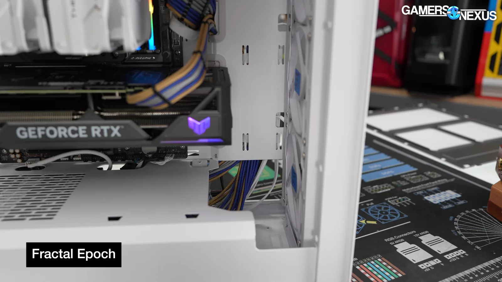 As we saw in the Meshify 3, Fractal uses Type-C shaped connectors (NOT actual USB) for its RGB Momentum fans, but the RGB Epoch uses an adapter that splits out into standard fan and RGB connections.