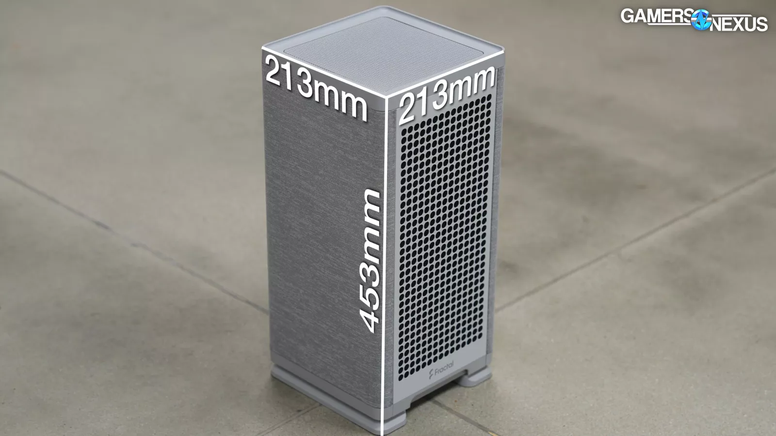 The Mood measures in at 213x213x453mm. Fractal states 212mm for width and depth, but ours is 213mm. We’re glad Fractal is being realistic with its measurements. The volume calculates to 20.55L, which breaks the imagined 20L SFF barrier that some uphold. The Mood is tall, but it doesn’t take up much space on the desk – it’s at least SFF adjacent.