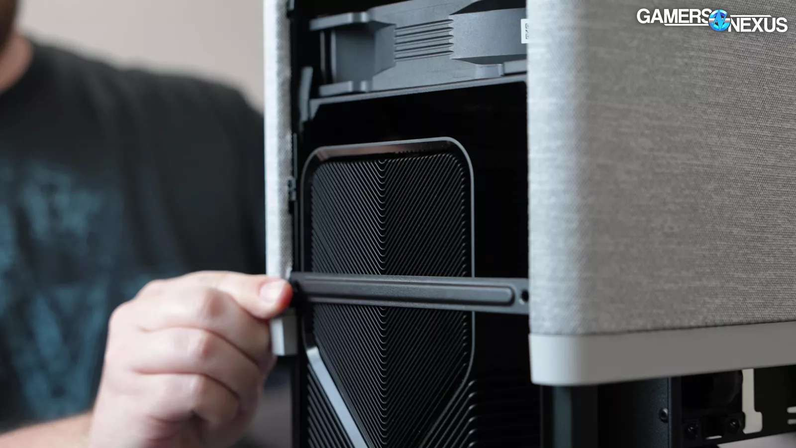 The case pillar nearest to the top of the GPU is actually removable, giving easier access for installation and removal. It’s a helpful touch.