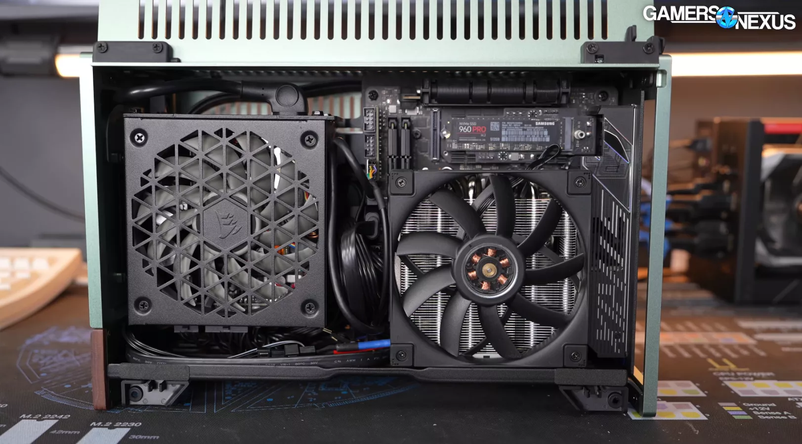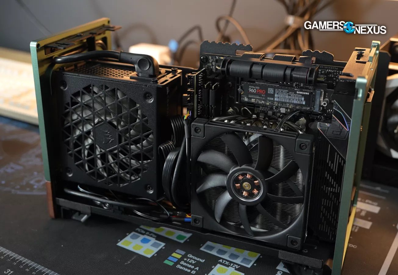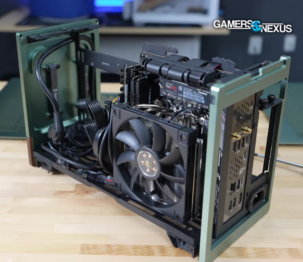 The main discussion point in the video is that mini-ITX cases are impossible to review in a fully standardized way without shorting some of the cases. A large part of the point of ITX is to fit the most in the least, and so standardizing cooler selection would mean limiting how useful -- for example -- the "H2O" aspect of the DAN Case A4-H2O is if we were to use a downdraft cooler. Likewise, switching coolers between cases and putting them all on the same chart effectively becomes a cooler review, not a case review, which we do separately. To control and limit variables as much as possible, we are largely looking per-case for ITX reviews (whereas our ATX reviews can be more standardized).