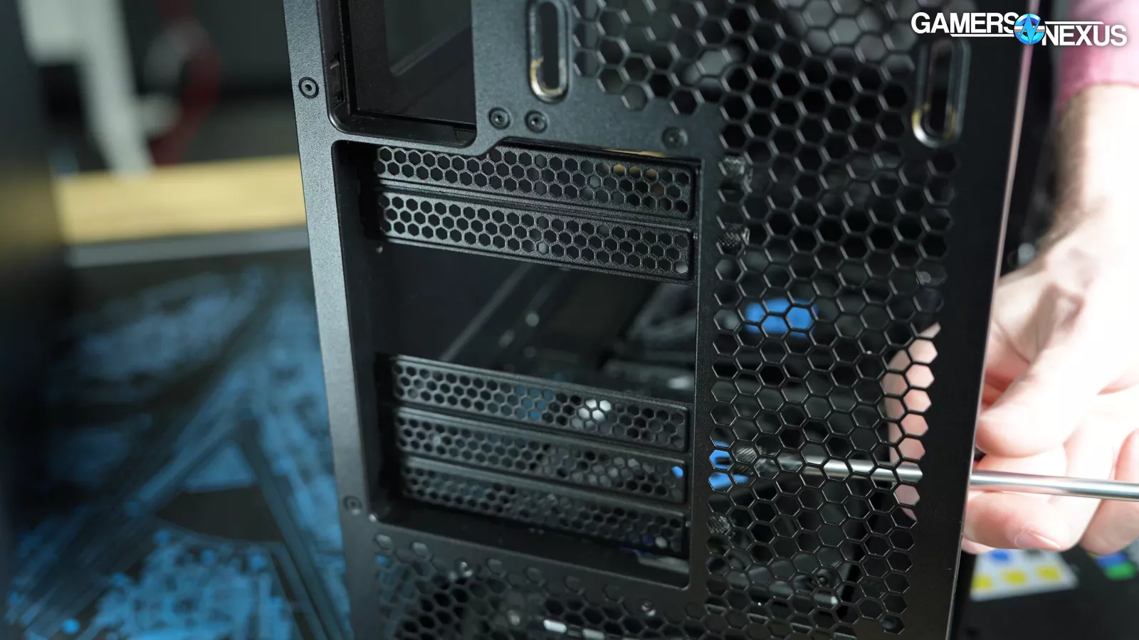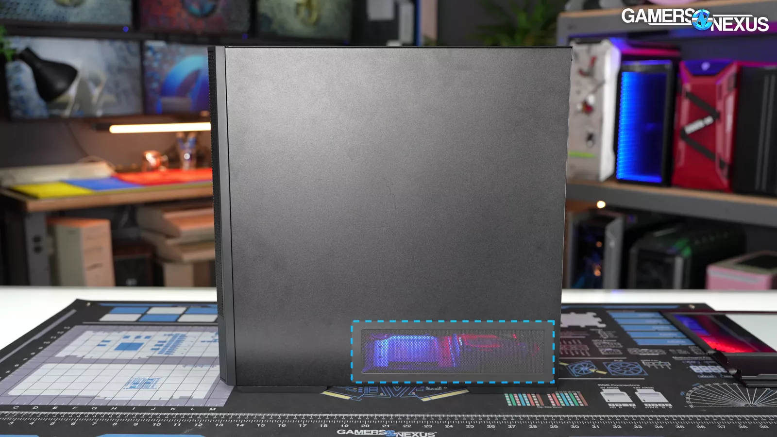 We only ran basic tests in "standard mode" on the 216. There's also an "air cooling mode," but in our original review, we found that this helped GPU thermals while simultaneously hurting CPU thermals with our bench hardware. Check our Lancool 216 review for more detail on alternate configurations, including an external fan bracket attached to the back of the case.
