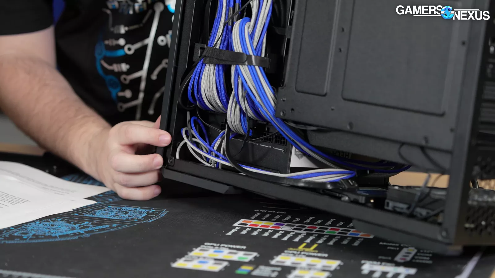 All of this would only be an inconvenience, except that the steel side panel is tooless. If you're using bulkier cables with individually braided sleeves like in our example, it is possible to choose power supply and cable combinations that make it nearly impossible to snugly close the side panel. It’s possible, and we did it with our bulky sleeved cables to prove that, but this took a good amount of time to manage and flatten.
